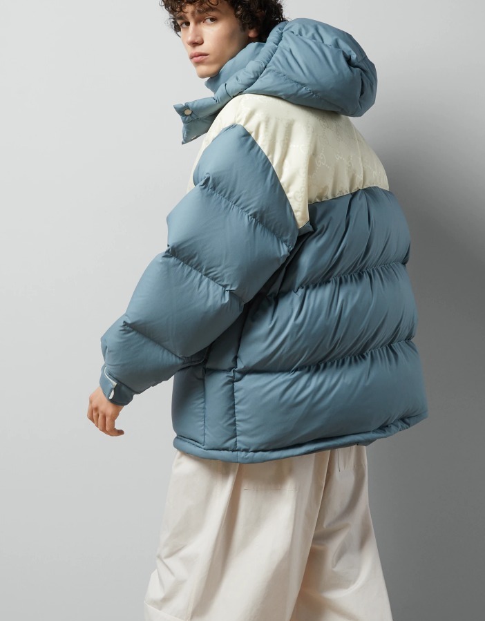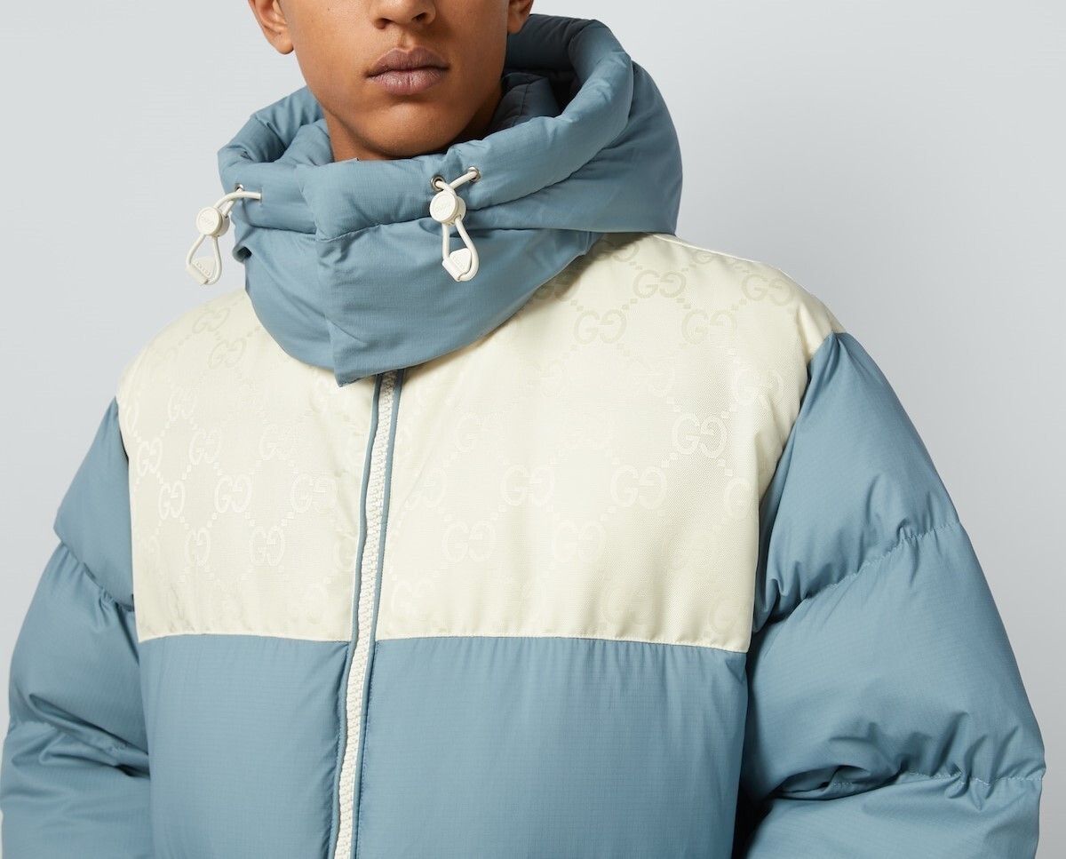 GGインサート付きグッチの新作ナイロンダウンジャケット。