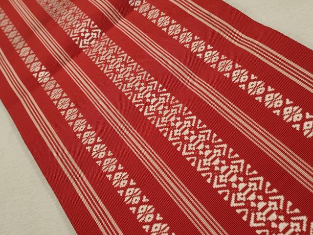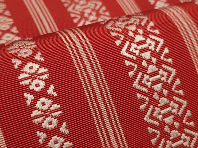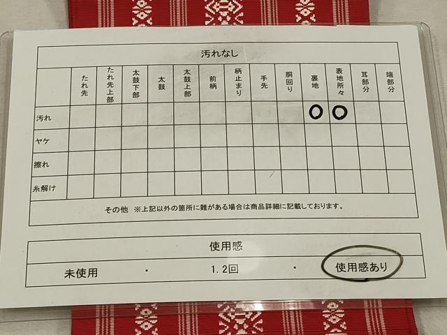 | 【正絹】 詳細に関しましては、画像をご確認ください。 本場筑前博多織は、 福岡県福岡市博多区やその周辺で生産される絹織物です。 仏具のひとつである独鈷、華皿を基にした幾何学模様が織られています。 江戸時代に筑前藩主だった黒田長政が幕府への献上品にしたことから、 博多献上、献上博多とも呼ばれます。 横畝が際立って見える経畝織りという織りになっています。 30〜60本の細い経糸を使うため、こしやはりがあり、 地合が硬く、光沢感があります。 きちんと締まり、くずれにくい、締めやすい帯といわれています。 大変上質な逸品になりますのでぜひお手入れをされてお召しになられてはいかがでしょうか。 お安く出品致しますので、是非この機会にいかがでしょうか?