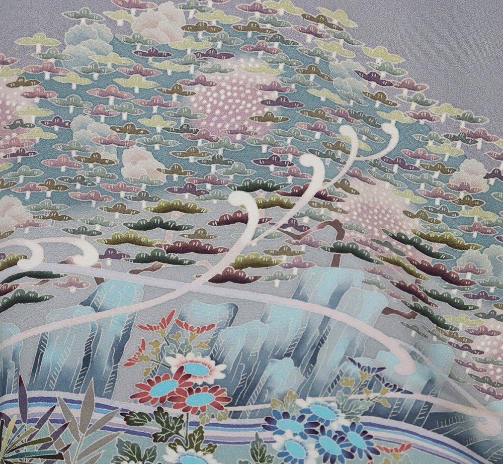 | 色・柄 | 本加賀友禅 前川哲氏作 色留袖 袷 濱縮緬地 薄グレー(銀鼠色)暈し地 松竹梅・荒波 上品な色留袖です。 (写真では上手く色が出ない場合があります。ご了承下さい) |
