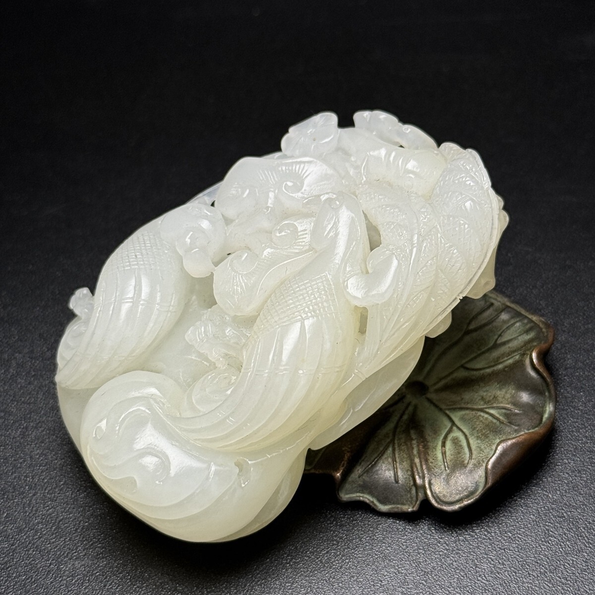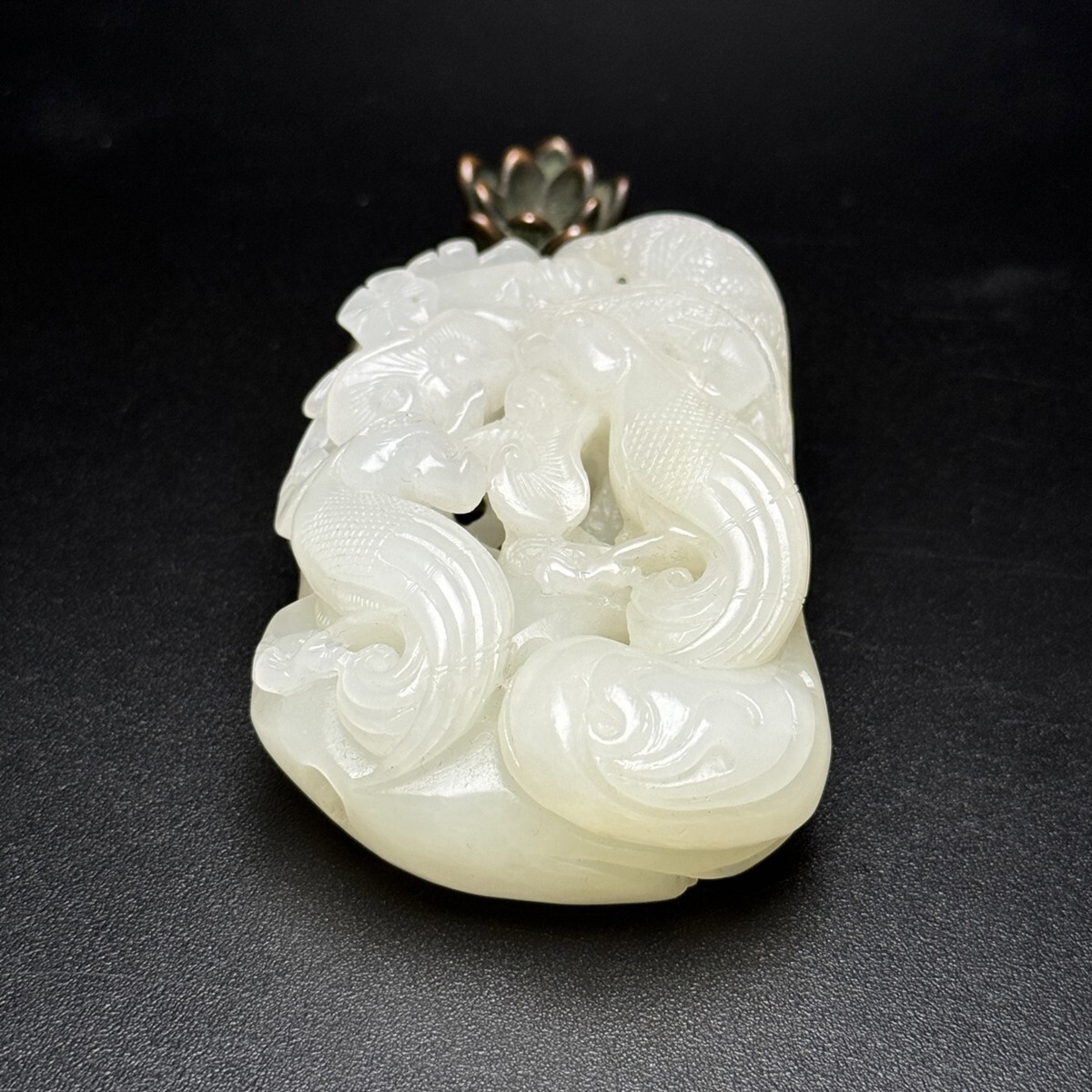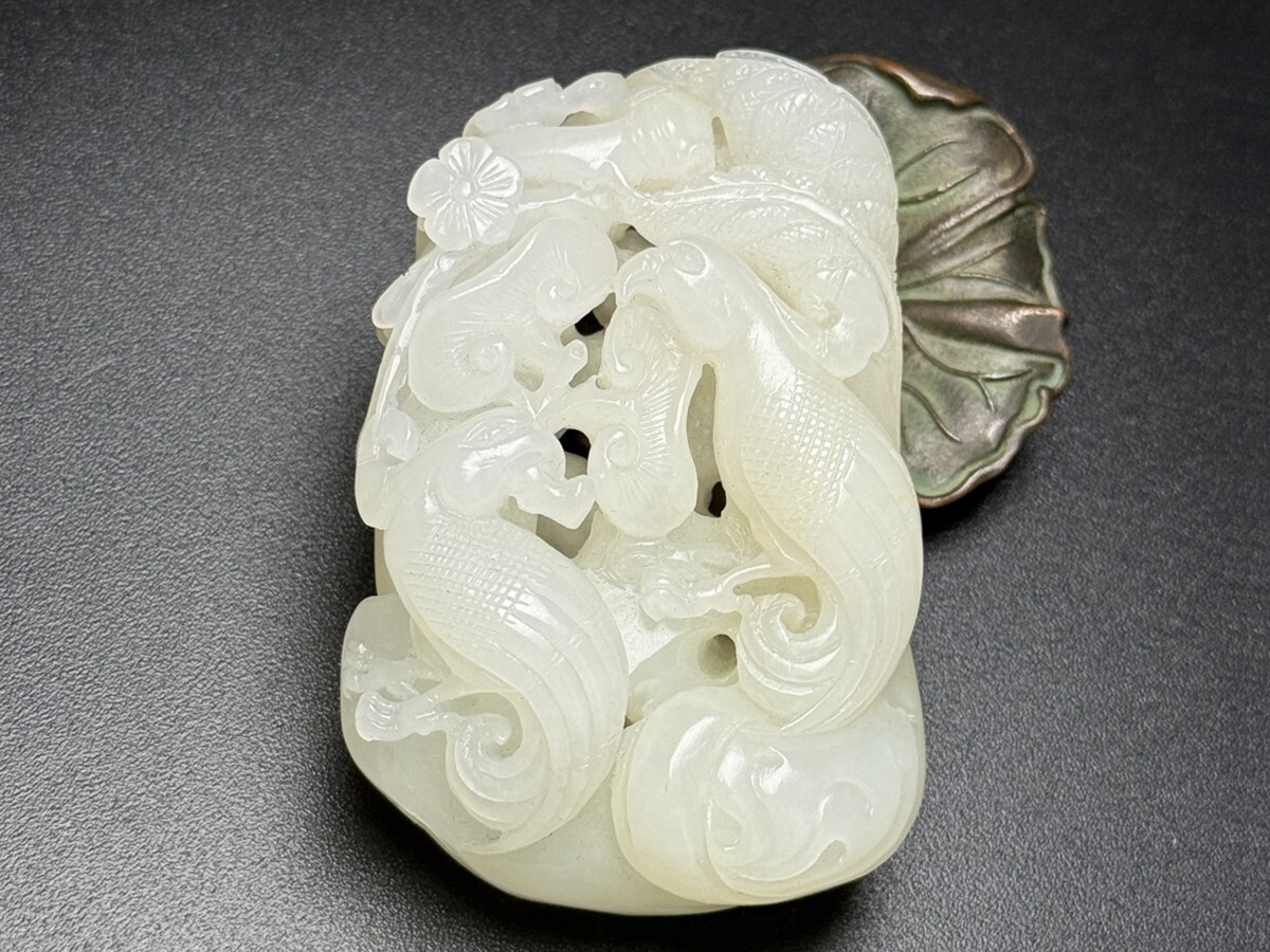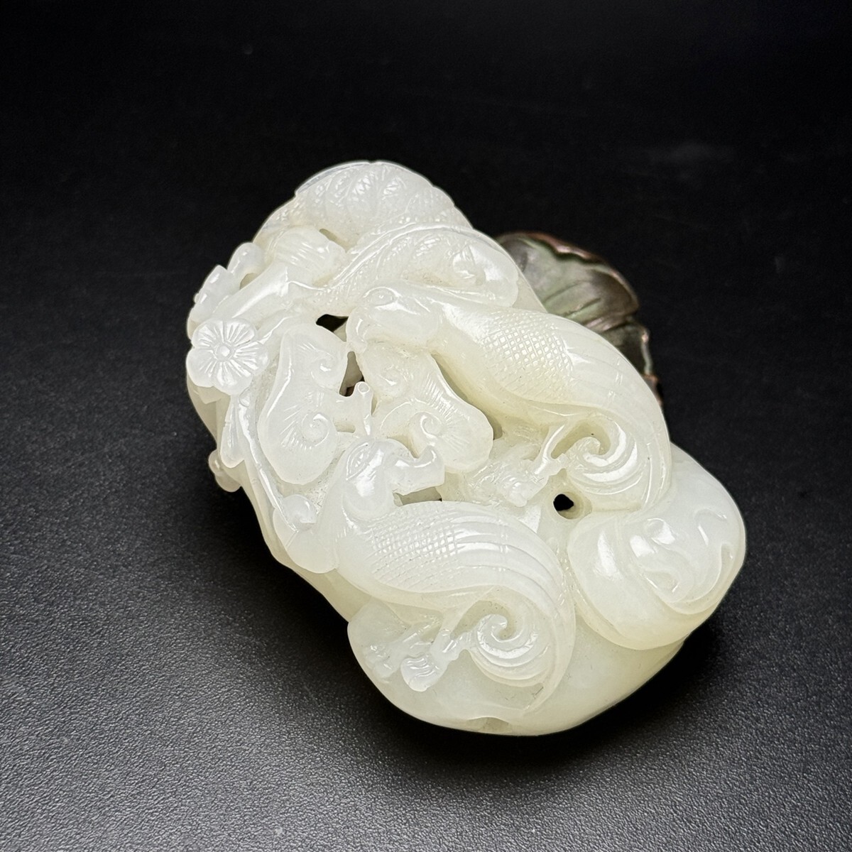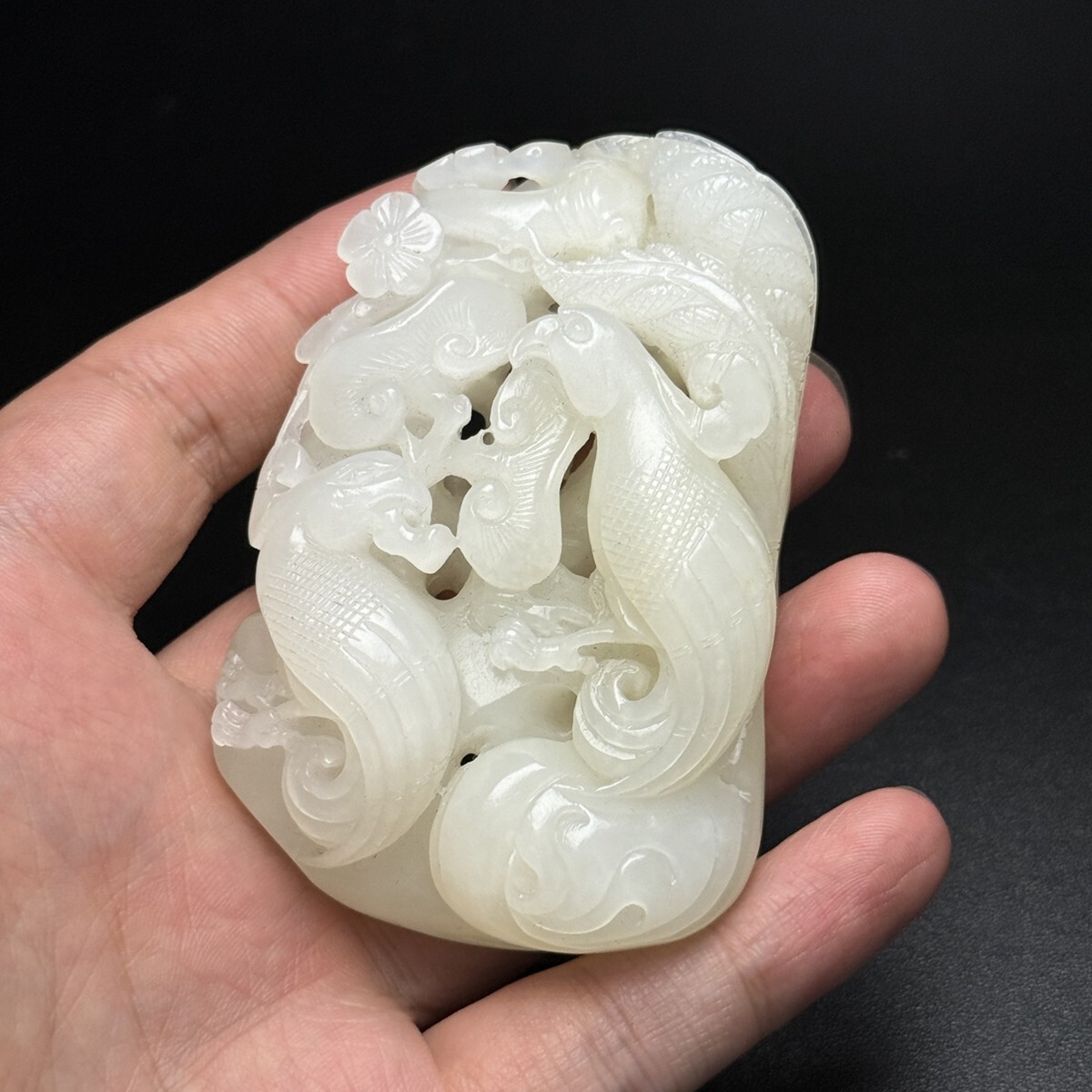 「清時代 和田玉 鏤空彫り 喜鵲登梅 掛件」極細工 裝身具 賞物 中国古美術 旧蔵出