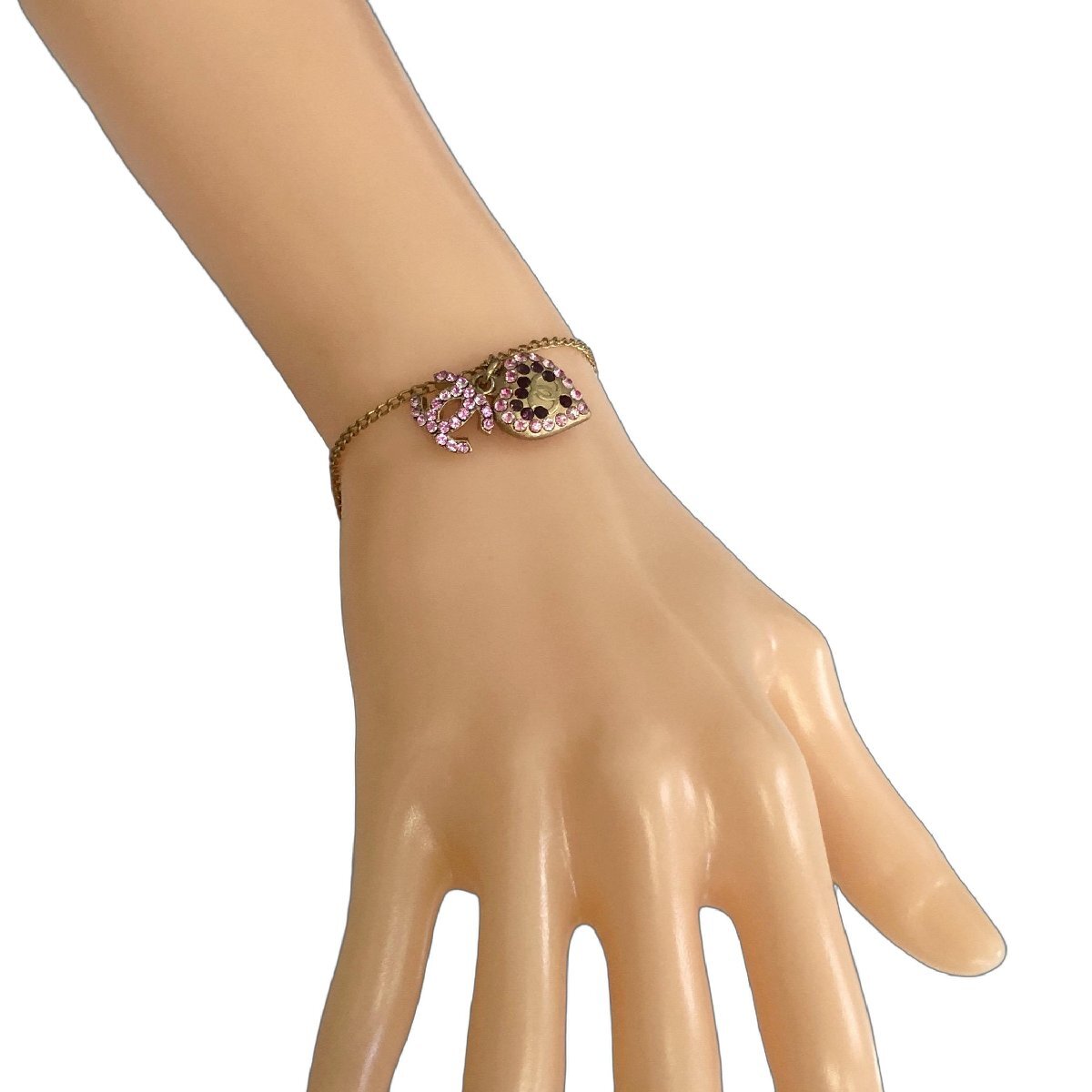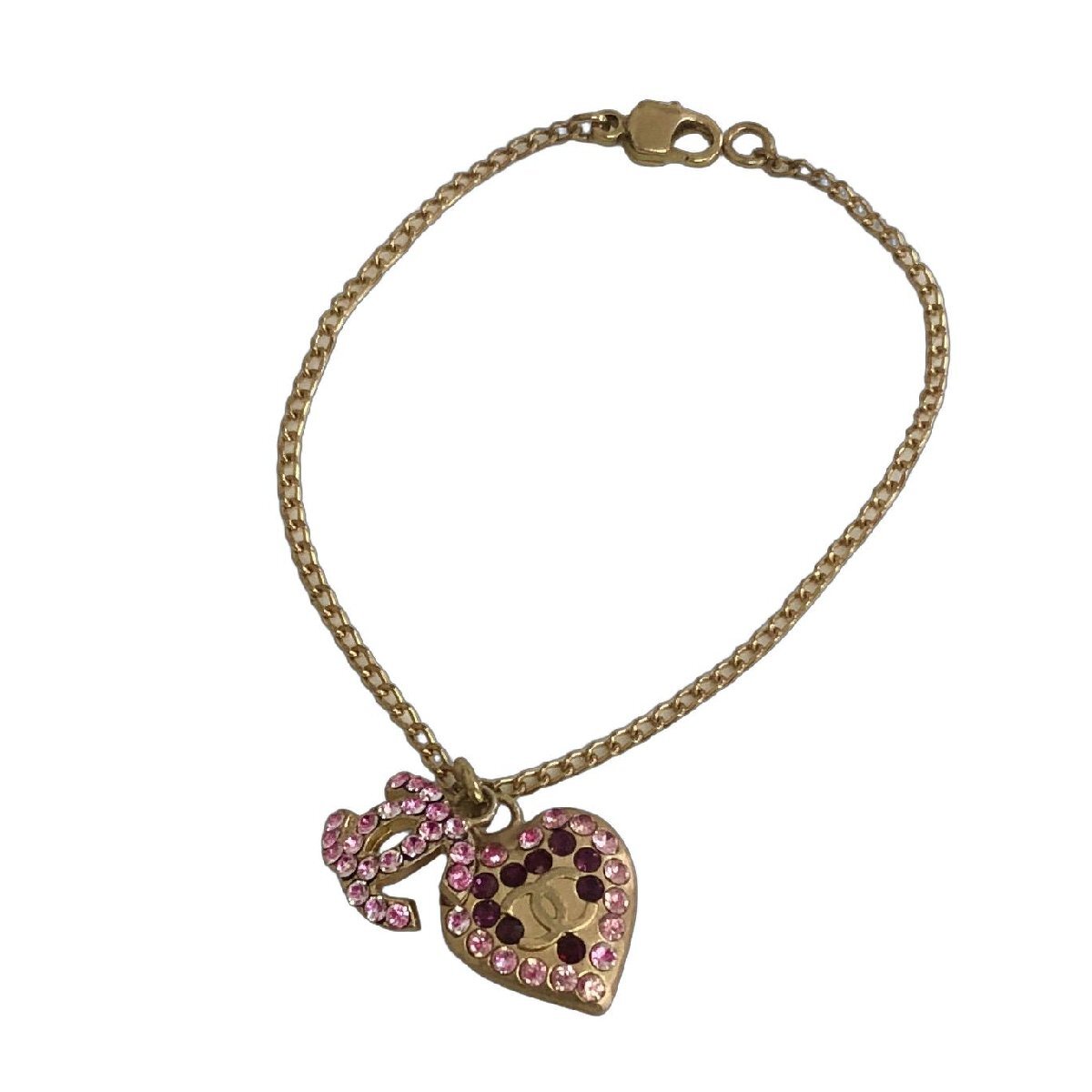 シャネル ブレスレット ココマーク ハート ピンク ストーン 石 スイング チェーン ゴールド 金 ロゴ