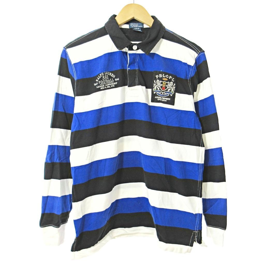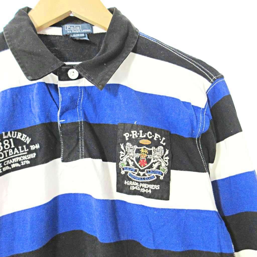 ポロ バイ ラルフローレン Polo by Ralph Lauren 90s ラガーシャツ ポロシャツ カットソー 長袖 ボーダー エンブレム 刺繍 XL(18-20)
