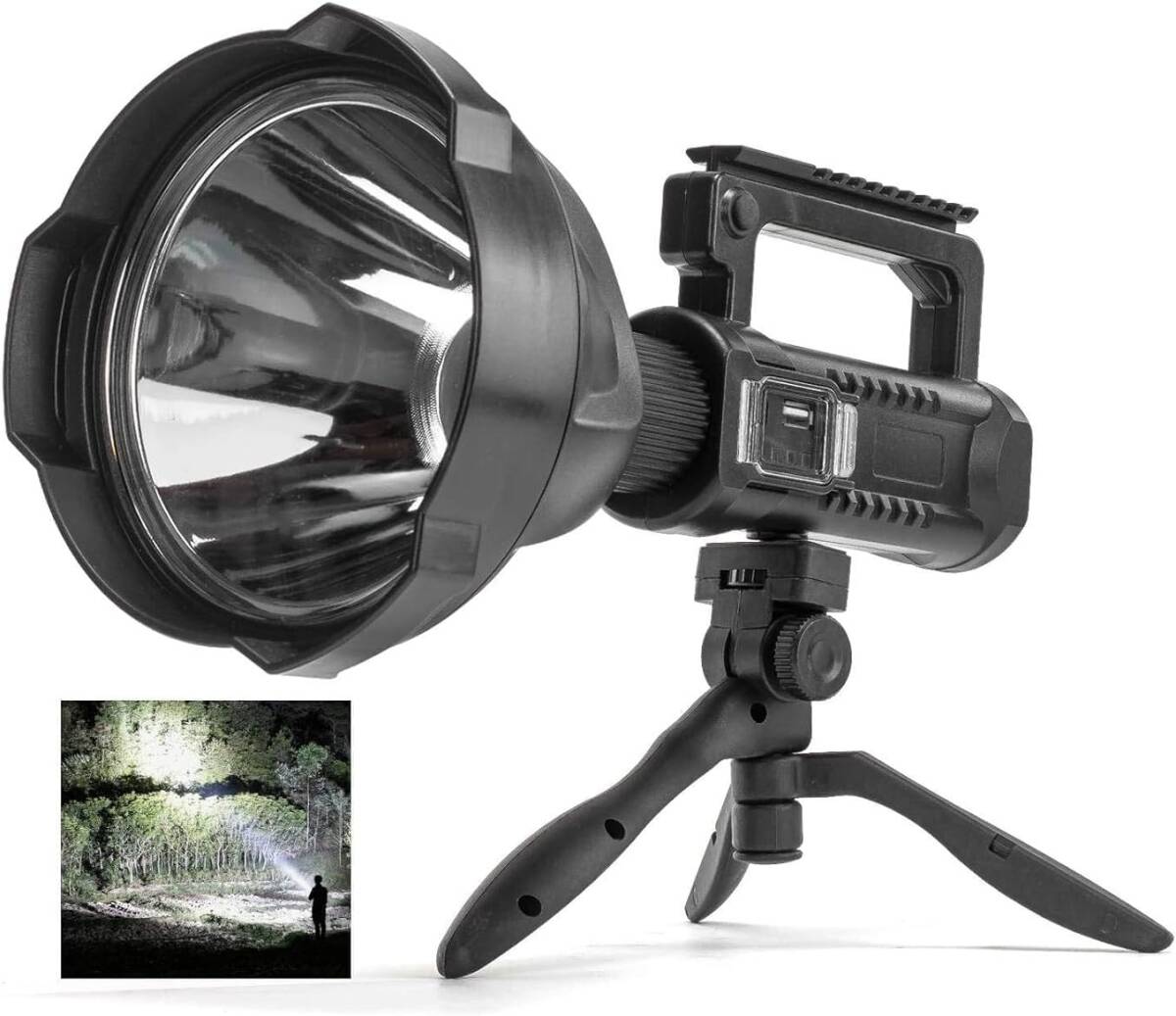 【三脚付 充電式スポットライト 90,000ルーメン】 超高輝度スポットライト 4モード&USB出力 防水ハンドヘルドLEDスポットライト