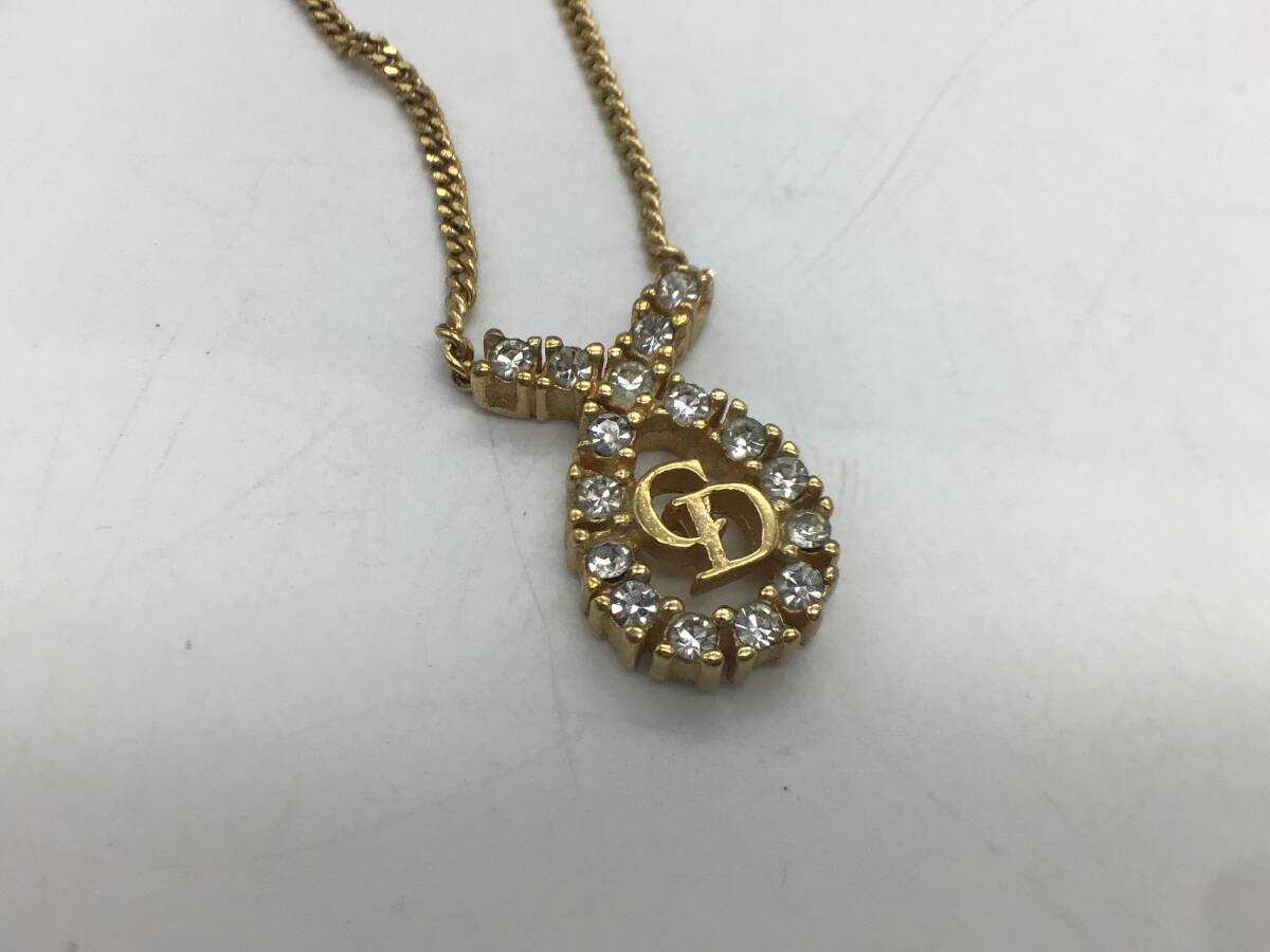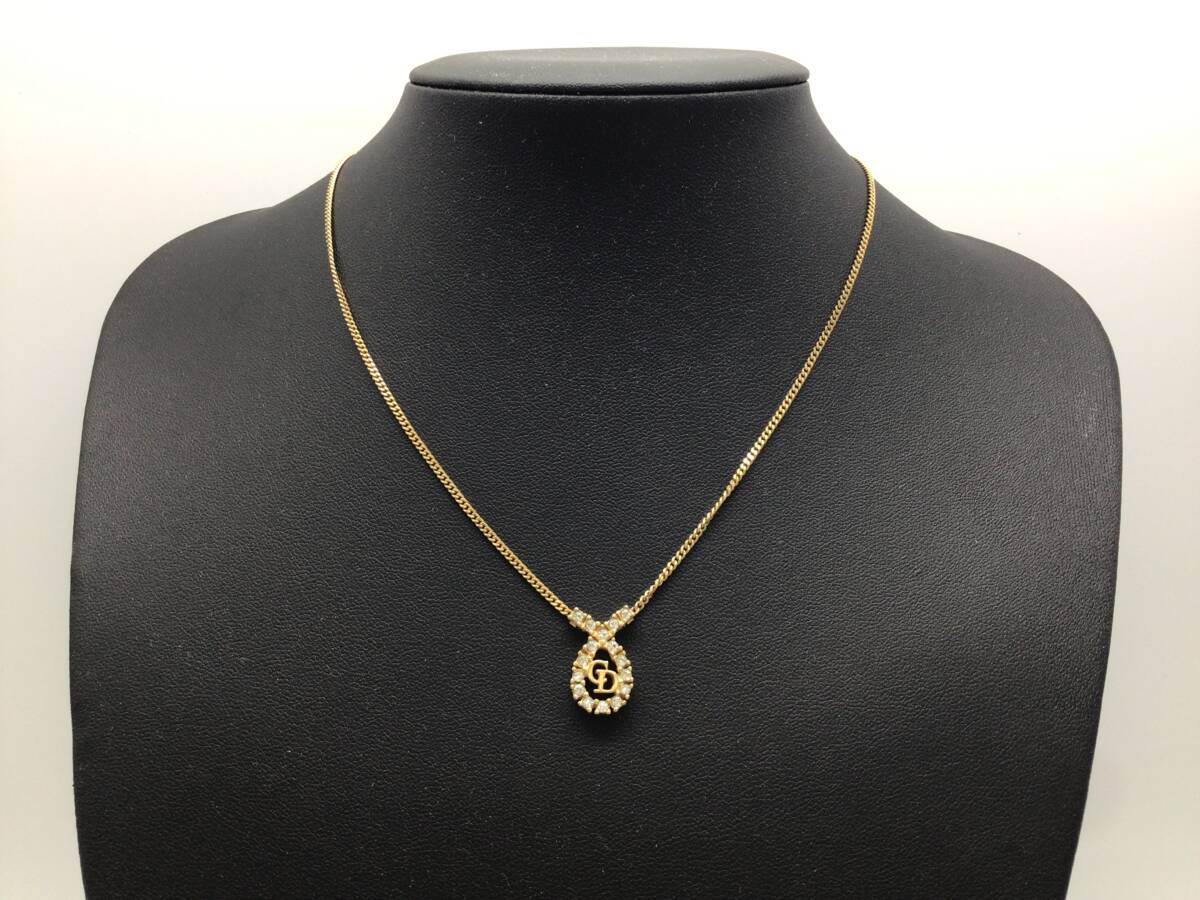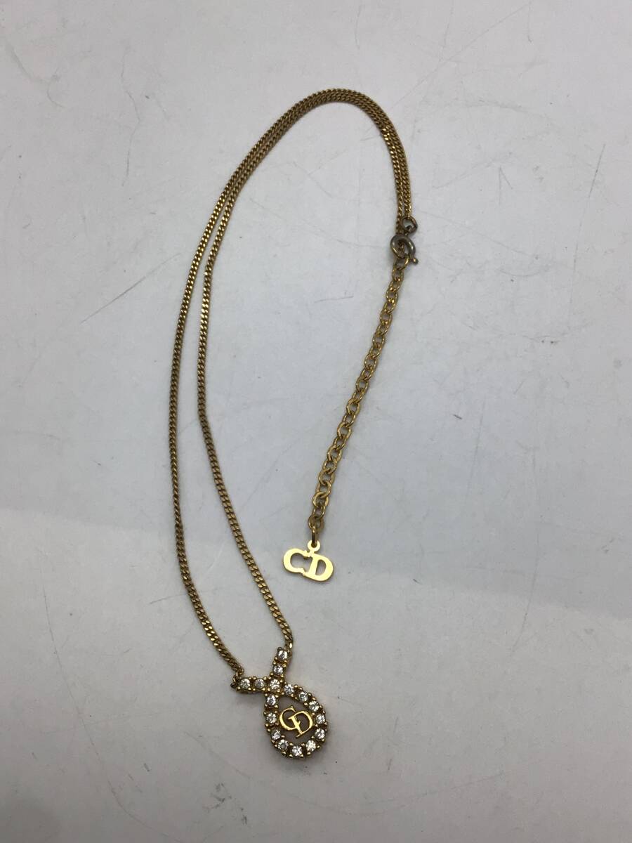6172■ Christian Dior クリスチャンディオール ロゴ ネックレス ゴールドカラー ラインストーン アクセサリー