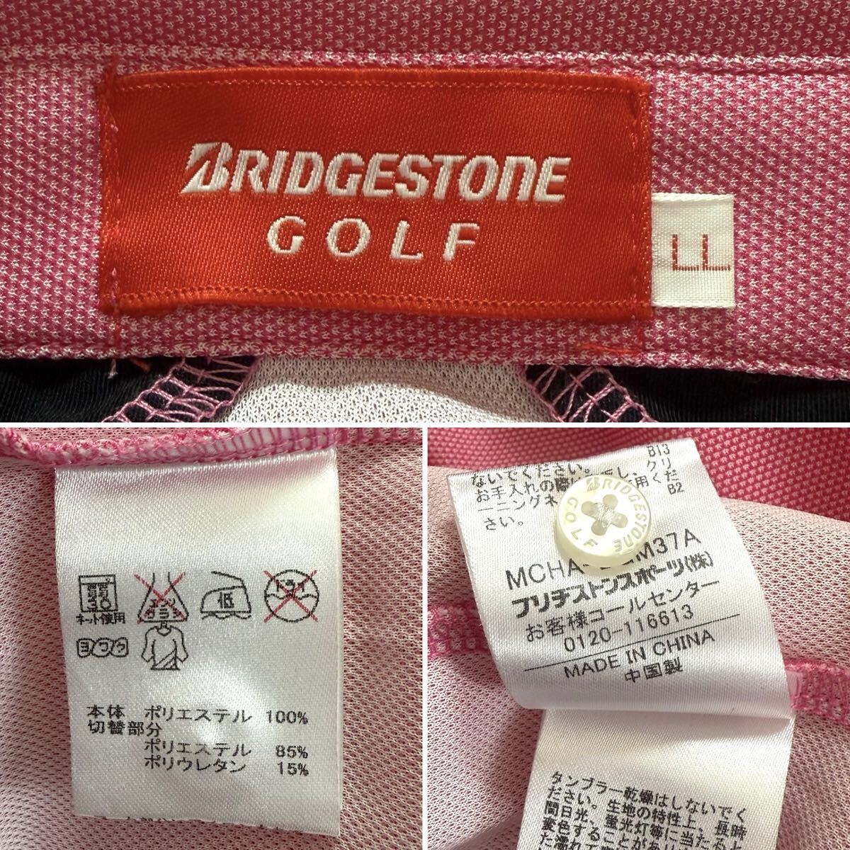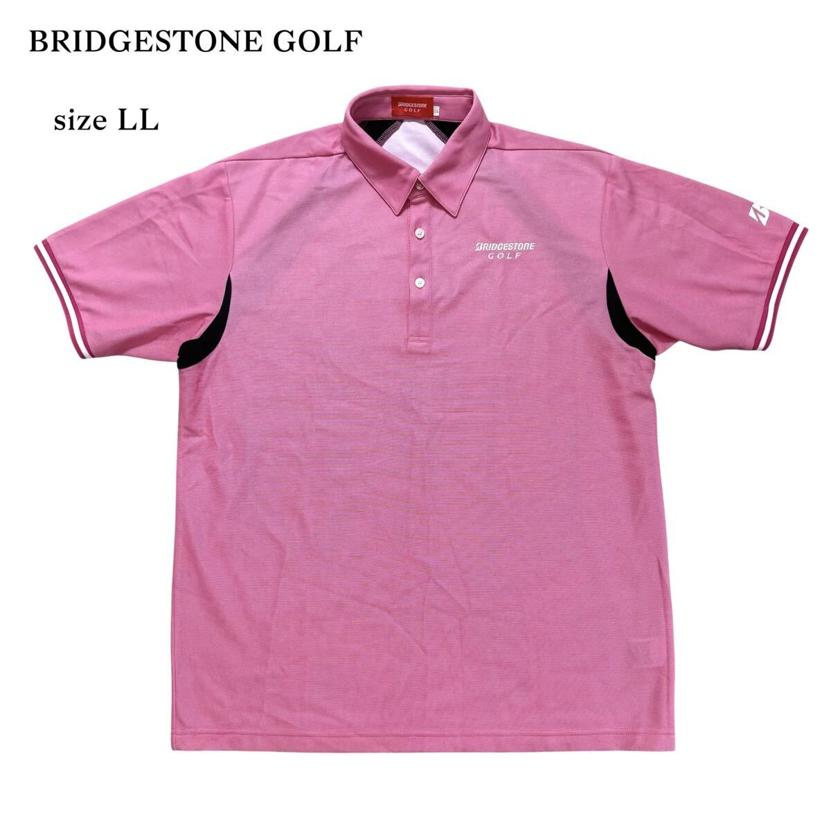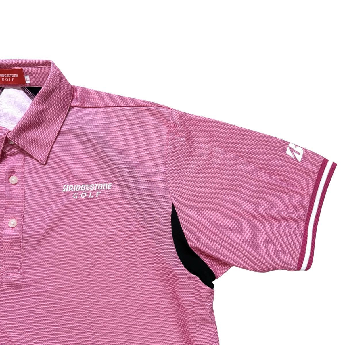 美品 BRIDGESTONE GOLF ブリヂストン ゴルフ 半袖 ポロシャツ 刺繍 メンズ ウェア ピンク トップス LL