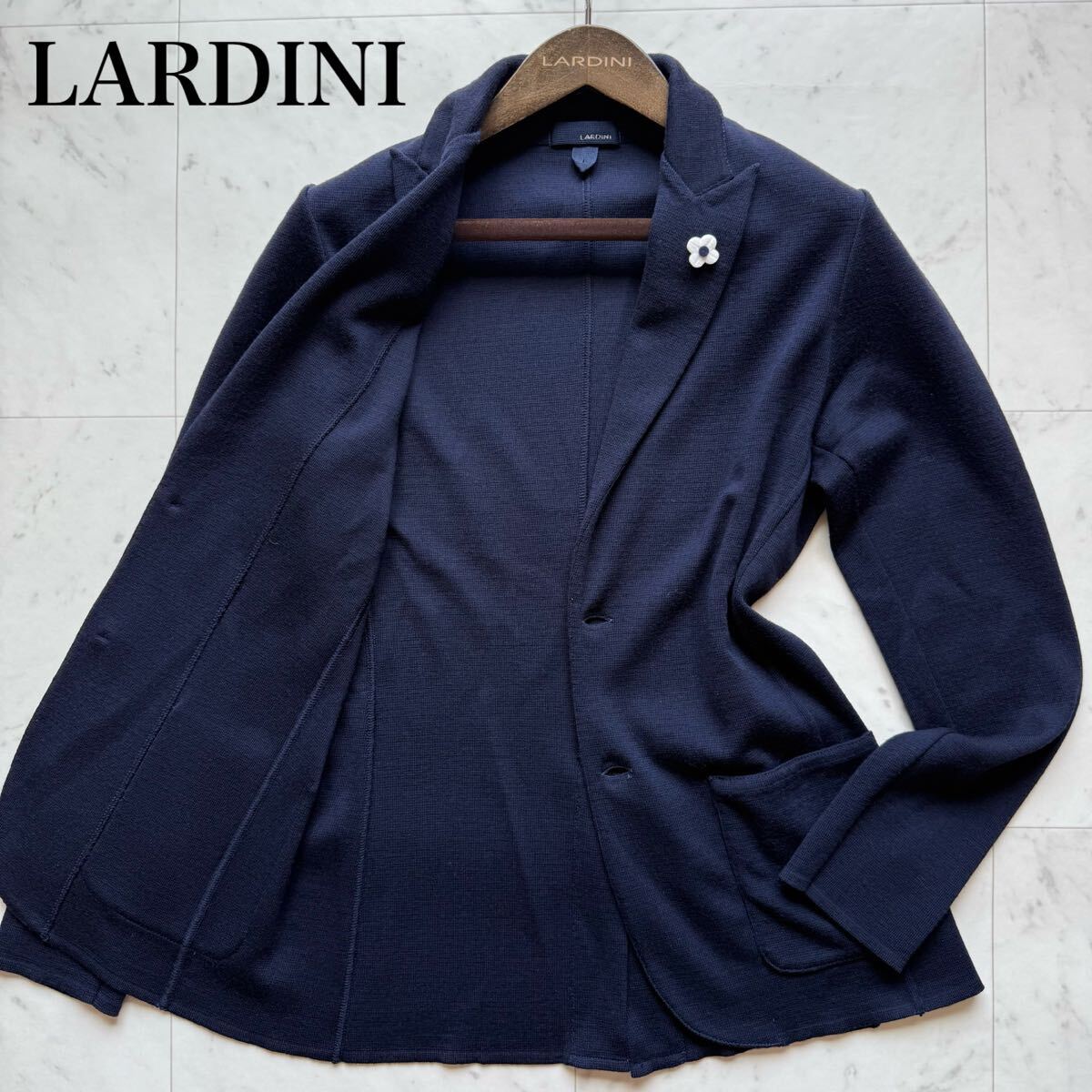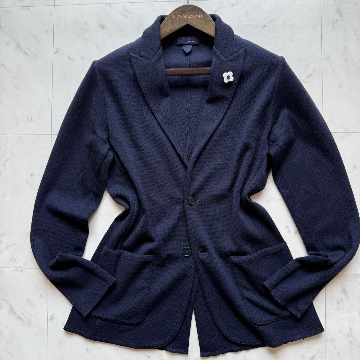 【超美品】ラルディーニ LARDINI 超快適 ストレッチ ウール100%【圧巻・極上】大人の色気! ニット ジャケット M程度 イタリア製 ネイビー