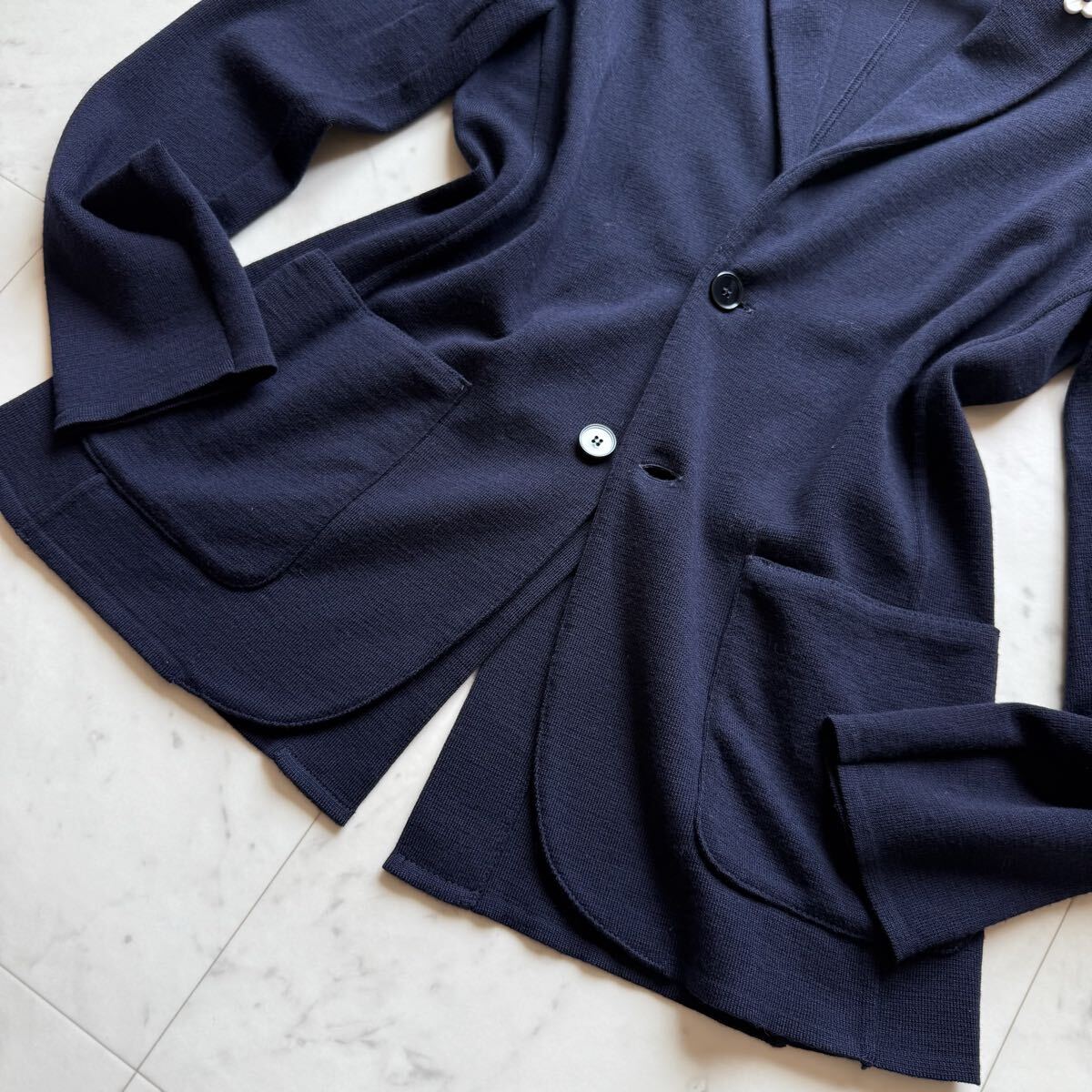 ★LARDINI(ラルディーニ) ストレッチ ウール100% ニットジャケット Mサイズ程度 イタリア製 ダークネイビー
