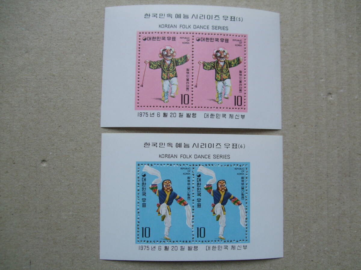 韓国 1975年 民俗芸能シリーズ【2】 小型S/S 2種完 未