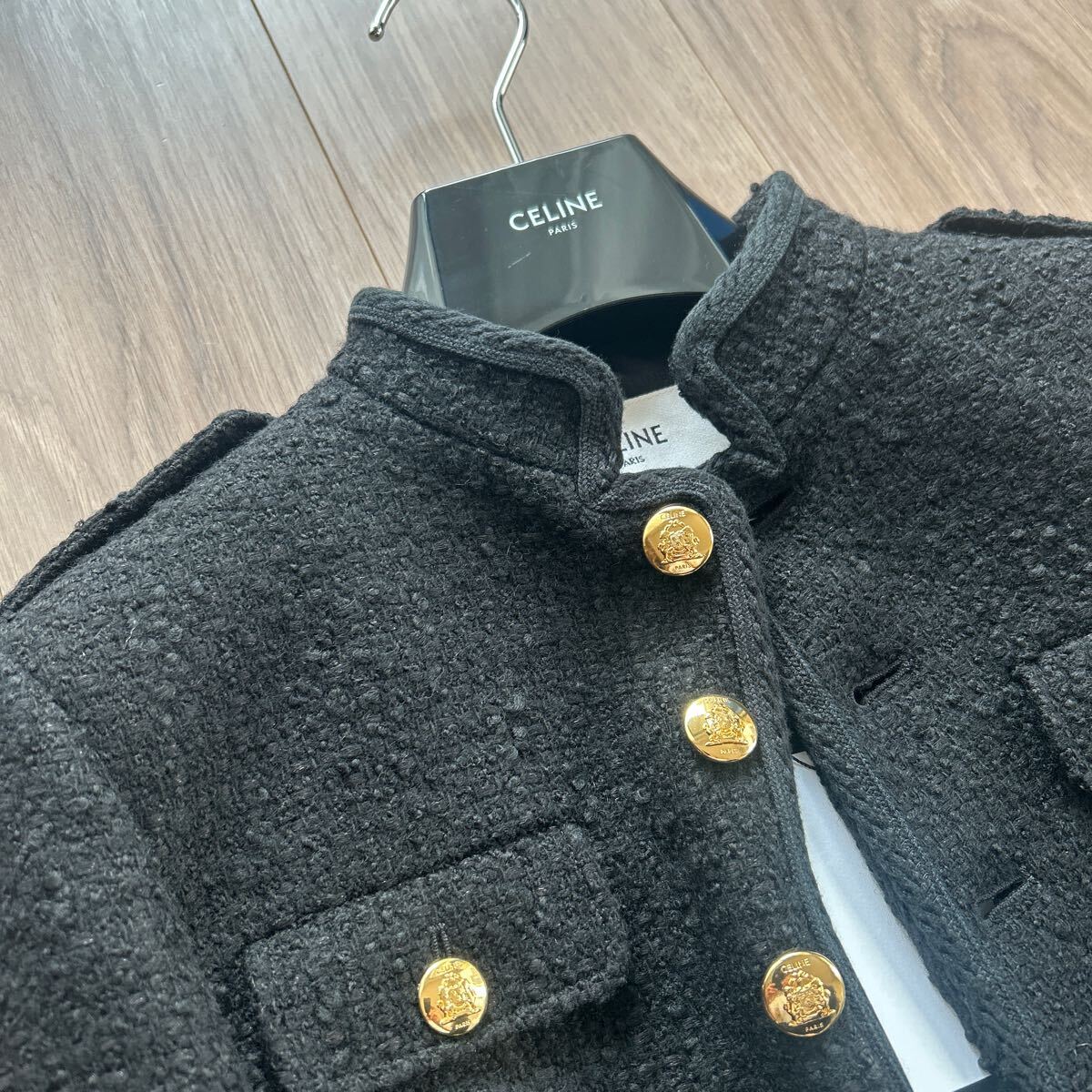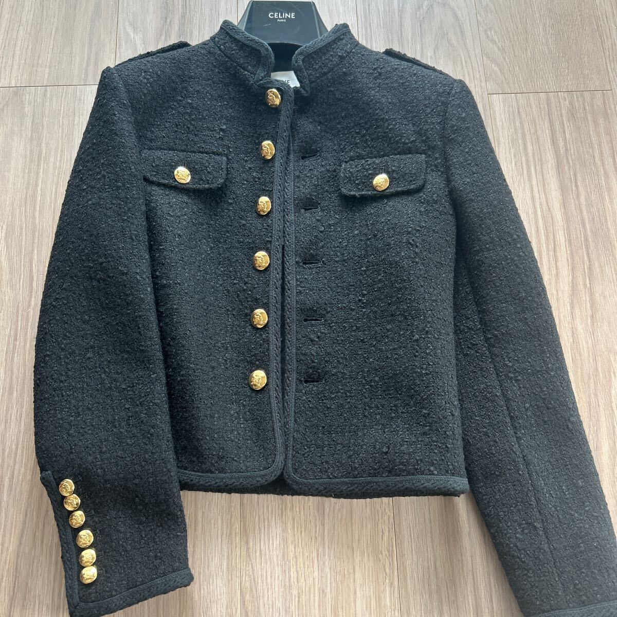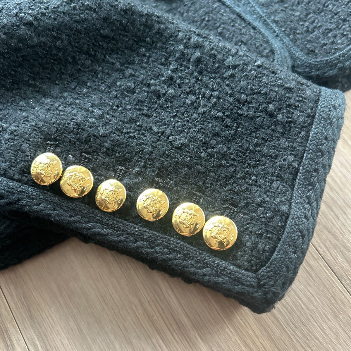 三越銀座にて購入しましたが使用しないためお譲りします。セリーヌの代表的定番ツイードジャケットでゴールドのボタンがカジュアルな雰囲気で、デニムにも合わせやすいデザインです。
