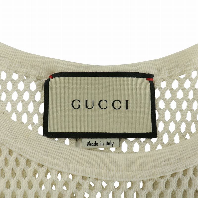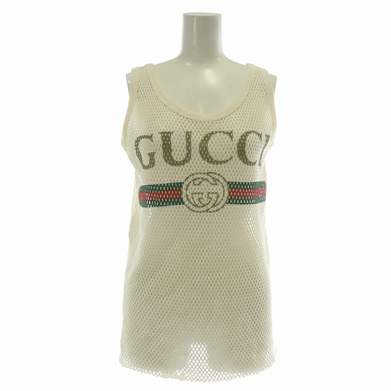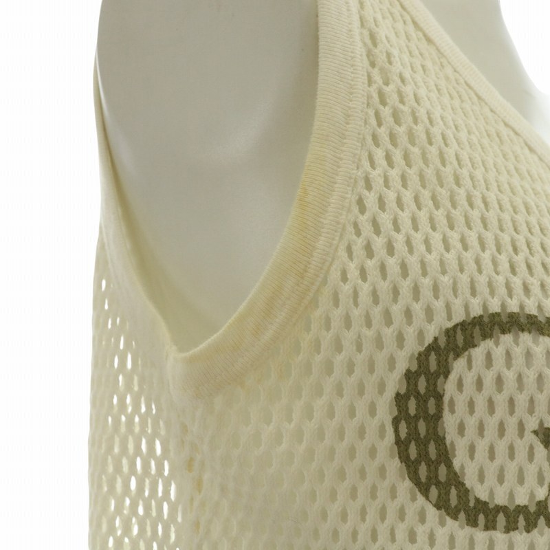 グッチ GUCCI タンクトップ ノースリーブ カットソー メッシュ ヴィンテージロゴ シェリーライン インターロッキングG XS 白
