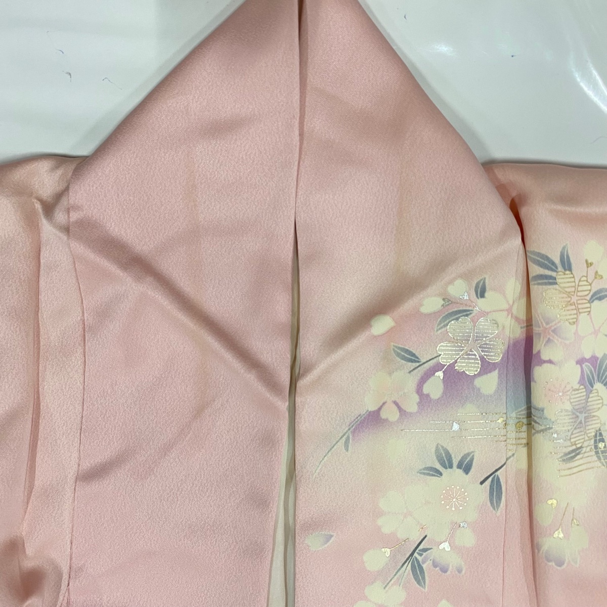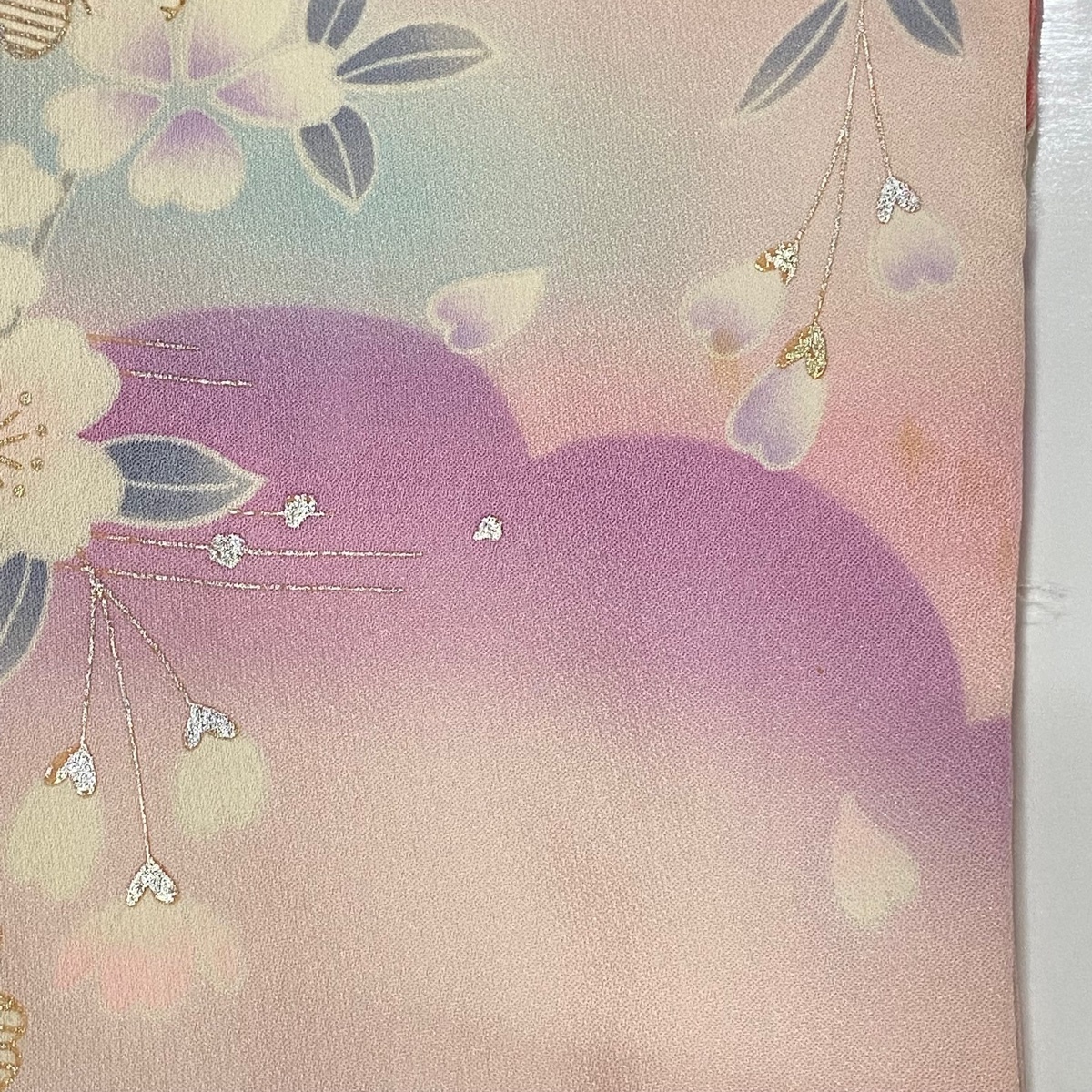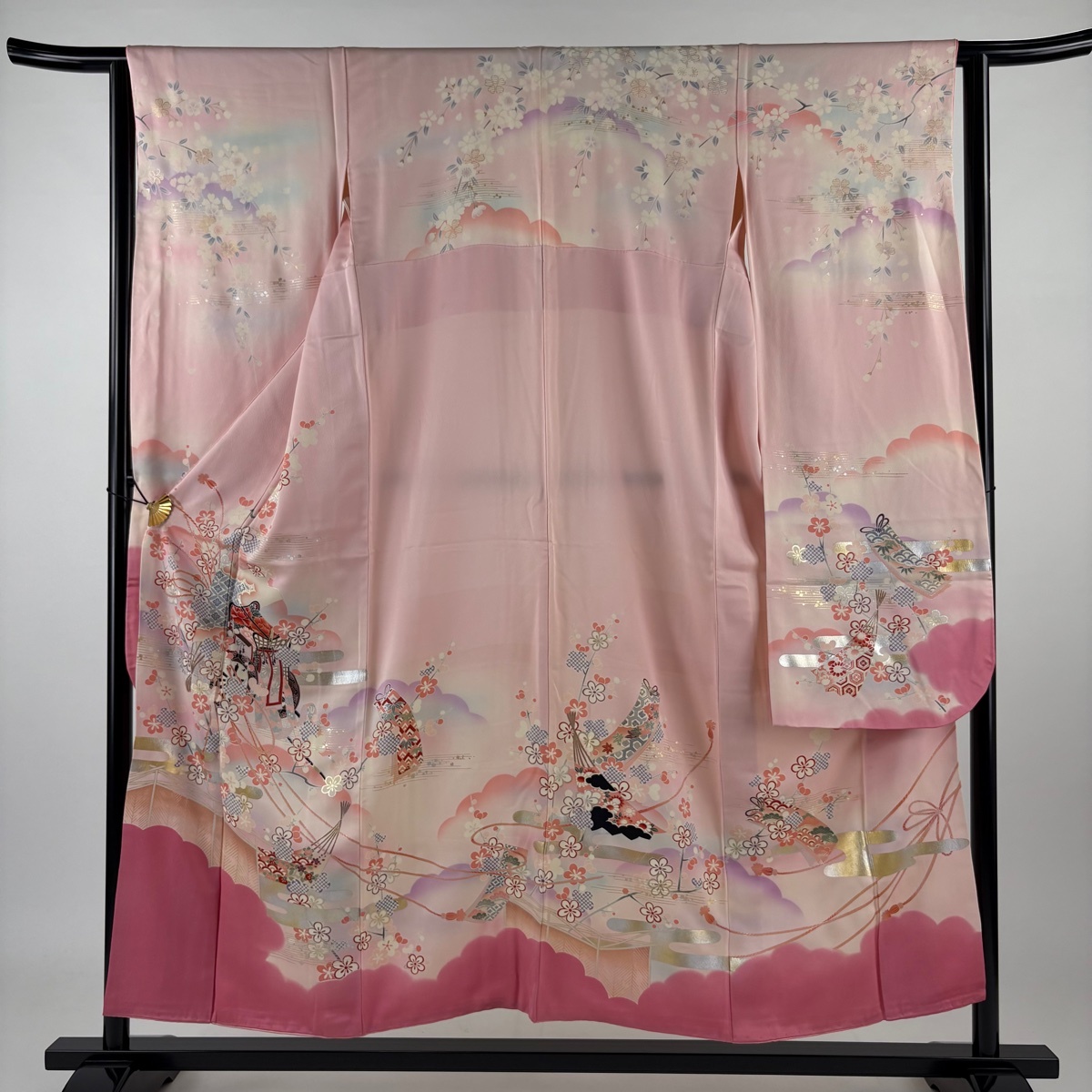 振袖 名品 御所車 七宝 金銀彩 ぼかし 薄ピンク 袷 身丈152.5 裄丈63 S 正絹 【中古】 |