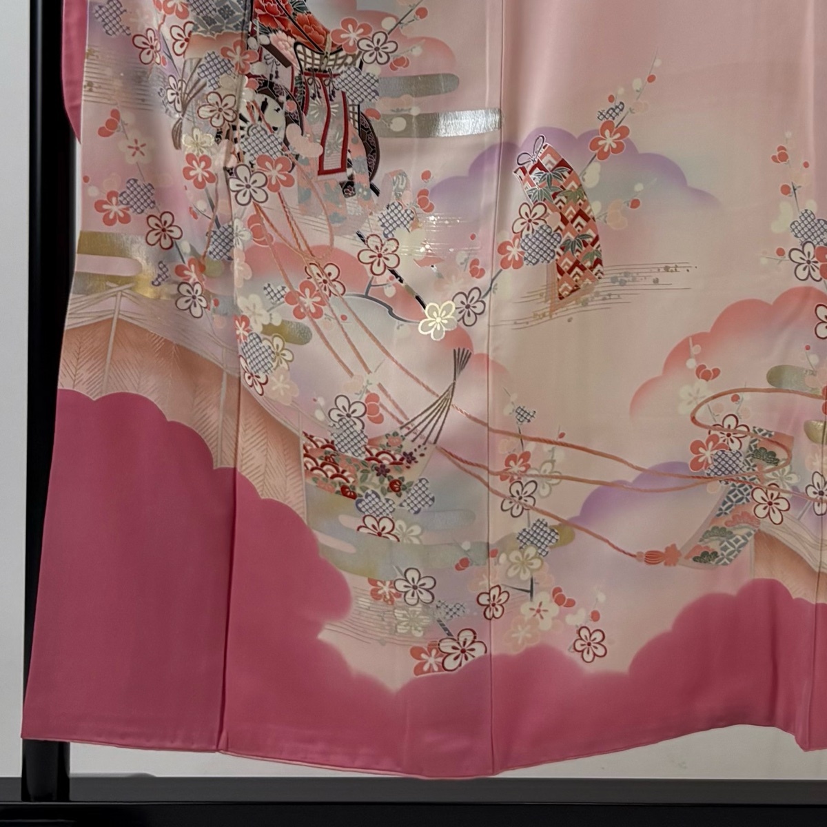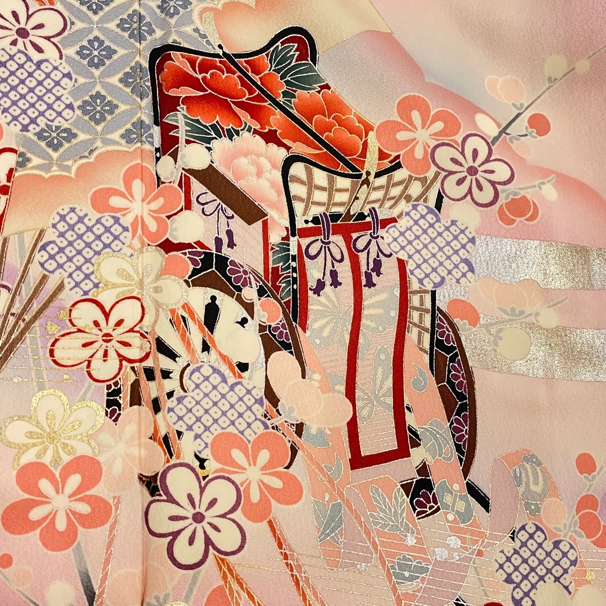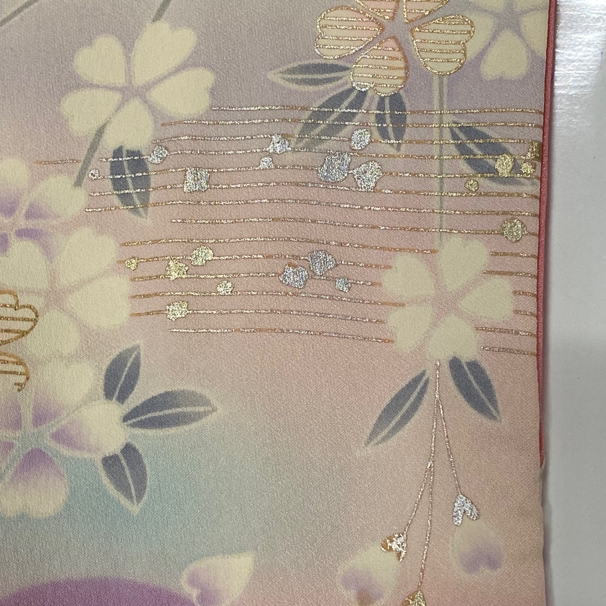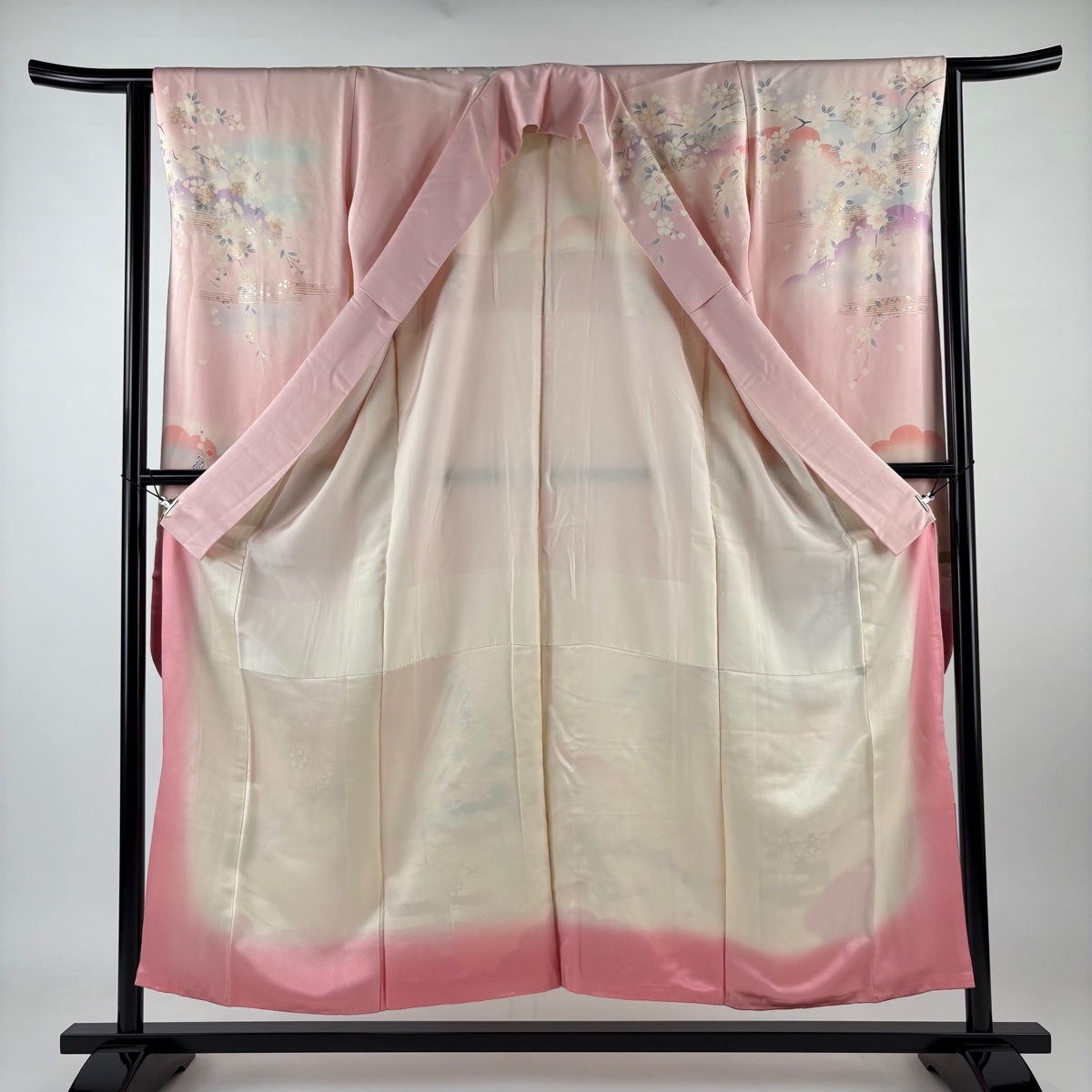 振袖 名品 御所車 七宝 金銀彩 ぼかし 薄ピンク 袷 身丈152.5 裄丈63 S 正絹 【中古】 |