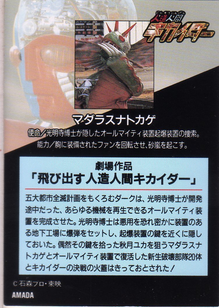 1997年にアマダより発売されたトレカ《 人造人間キカイダー トレーディングコレクション 》のシークレットスペシャルホロカード マダラスナトカゲ 》単品です。