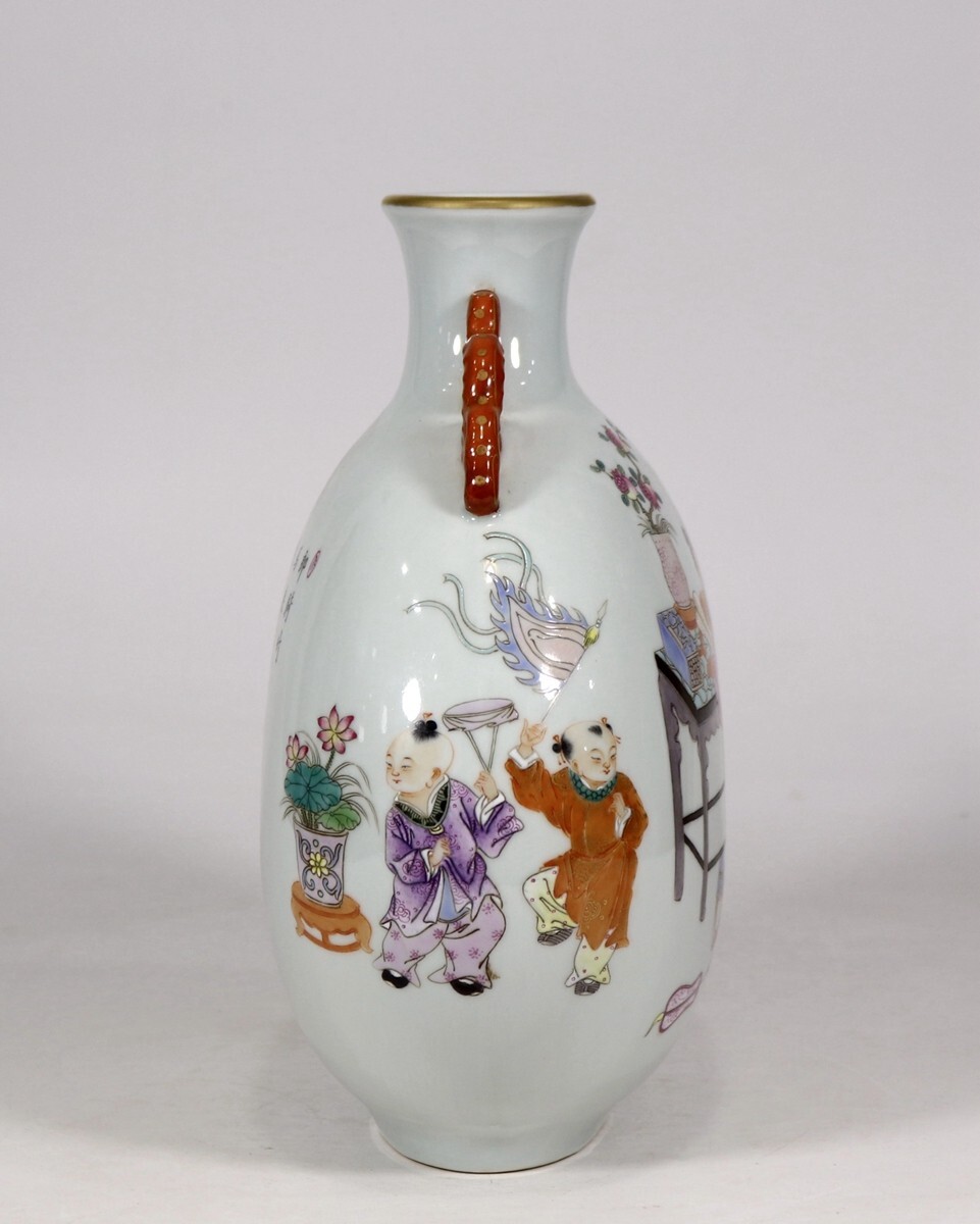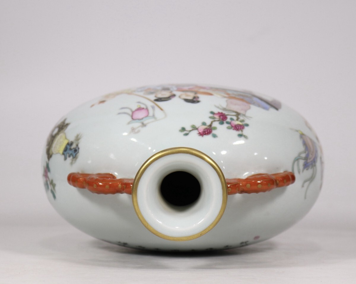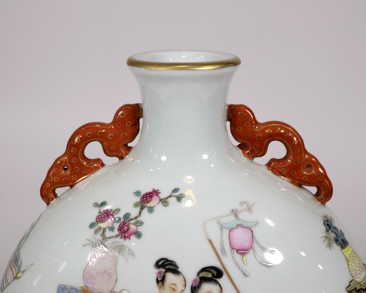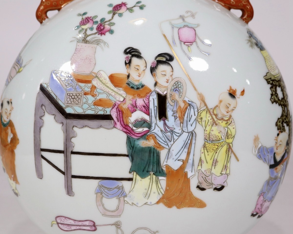 清代 大清乾隆年製 陶磁器 粉彩三娘教子 詩文 抱月瓶【仁】染付 置物擺件 古賞物 古美術 中国古玩 蔵出