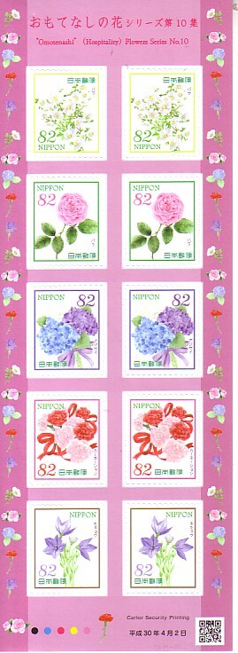 「おもてなしの花 シリーズ第10集」の記念切手です(82円切手X10枚)。送料は普通便110円(郵送 複数落札でも同一料金)になります。