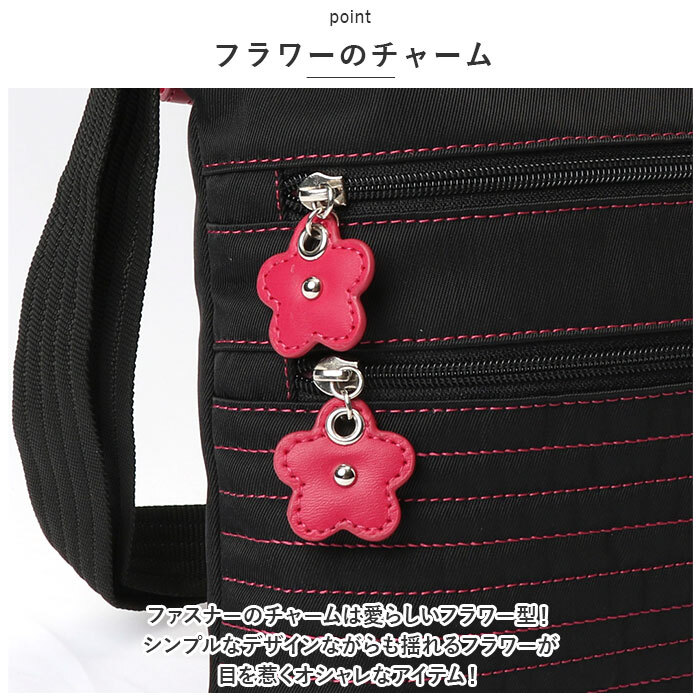 | 商品説明 | ・・使いやすさと可愛さが嬉しいブランド「Borsettiamo」からPLANTURE ショルダーバッグが新登場♪ ・【フラワーのチャーム】 ・ファスナーのチャームは愛らしいフラワー型!シンプルなデザインながらも揺れるフラワーが目を惹くオシャレなアイテム! ・【軽くて丈夫】 ・ナイロン素材だから軽くて耐久性のある生地感。 ・はっ水加工を施し、水滴や汚れに強い作りなのも嬉しいポイント。(※完全防水ではございません。強い雨にはご注意ください。) ・【スリムで機能的】 ・・2つのメインルームと、2つのフロントファスナーポケットが特徴的!背面にはパスケースやスマホを入れるのに最適な背面ポケット付き。 ・メインルームには長財布や500mlペットボトル、A5のリングノート等コンパクトでスリムな見た目ながら沢山入る◎ ・【キーフック付き】 ・サッと鍵を取り出せるキーフックを背面側のメインルームに搭載。 ・【長さ調節可能なショルダベルト】 ・ショルダーベルトは長さ調節ができ肩掛けや斜め掛け、シーンに合わせてスタイルを選べる! ・【ポケット仕様】 ・メインルーム・・・オープンポケット×2(前)、ファスナーポケット×1(後) ・フロント・・・ファスナーポケット×2 ・背面・・・ファスナーポケット×1 |