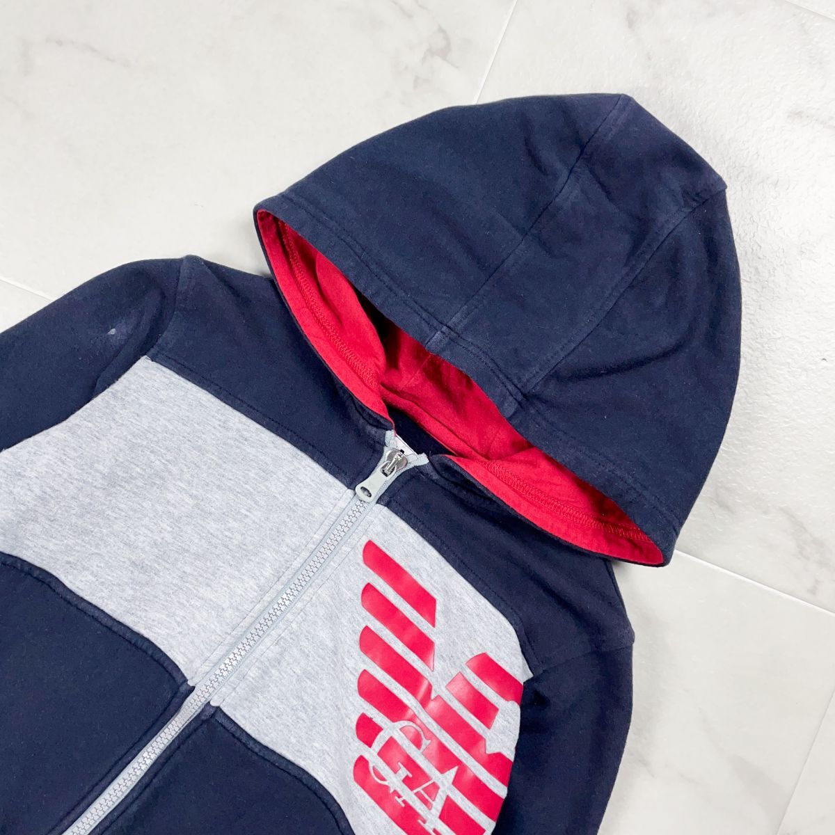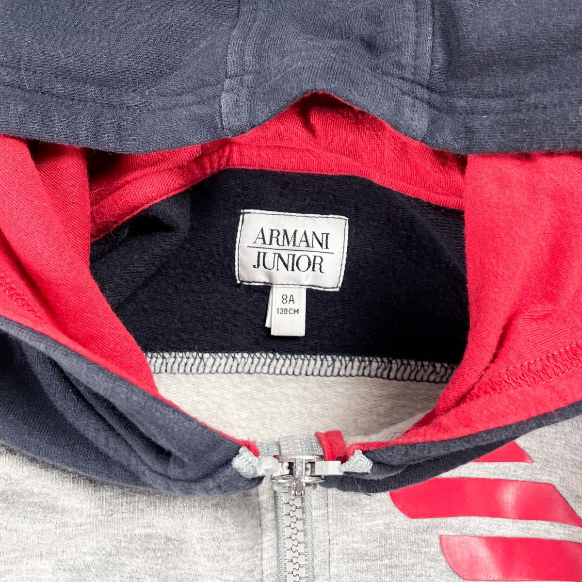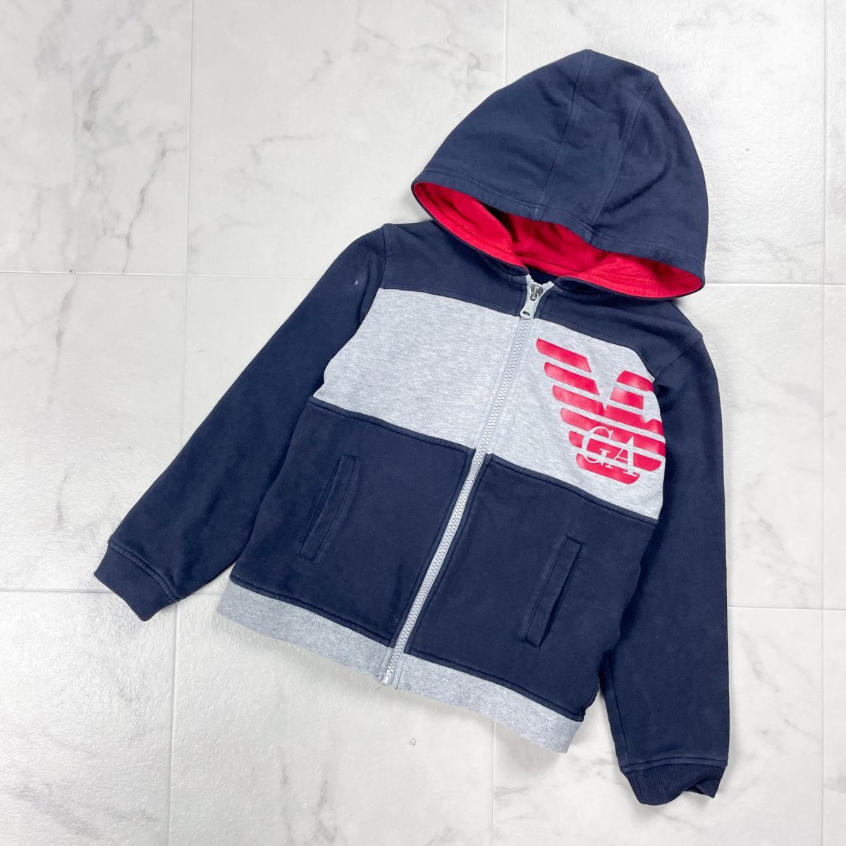 ARMANI JUNIOR アルマーニジュニア キッズ 長袖ロゴプリントパーカー 長袖 ジップアップ フード付 子供服 ネイビー 紺 サイズ130*GD46