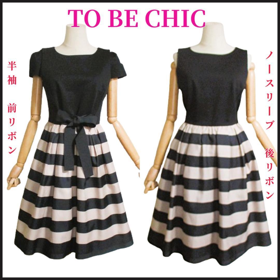 【トゥービーシック】ワンピース 4WAY リボン ボーダー 結婚式セレモニー  TO BE CHIC お食事会 お呼ばれ 発表会 匿名発送