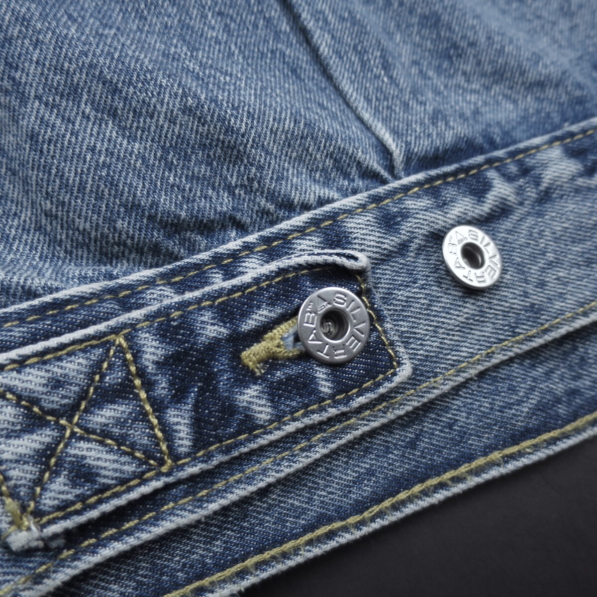 ■SilbverTabコレクションらしいゆったりとしたボクシーなリラックスフィットのジャケット。 ■胸元に2つのポケットを配したクラシックなデザインも特徴です。 ■身幅が広いので厚手のスウェットやセーターを着こむことも、春先にはTシャツにシャツ感覚で羽織ることも出来、一年を通して活躍する一着です。 ■リラックスフィット ■ボタンフラップ付き胸ポケット ■ウエストサイドポケット ※シルバータブが『Levi's』のものと『R(レジスターマーク)』のみのものと2種類ございます。 約10分の1の確率でR(レジスターマーク)が混在するため、一部マニアの間ではレア感があるとも言われていますが 落札の際にお選びいただくことはできません。予めご了承ください。 |