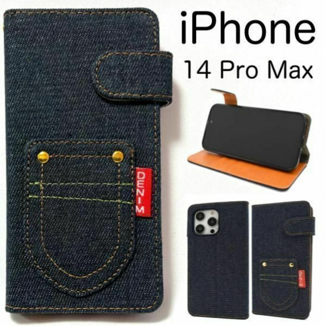 iPhone 14 Pro Max ポケットデニムデザイン 手帳型ケース