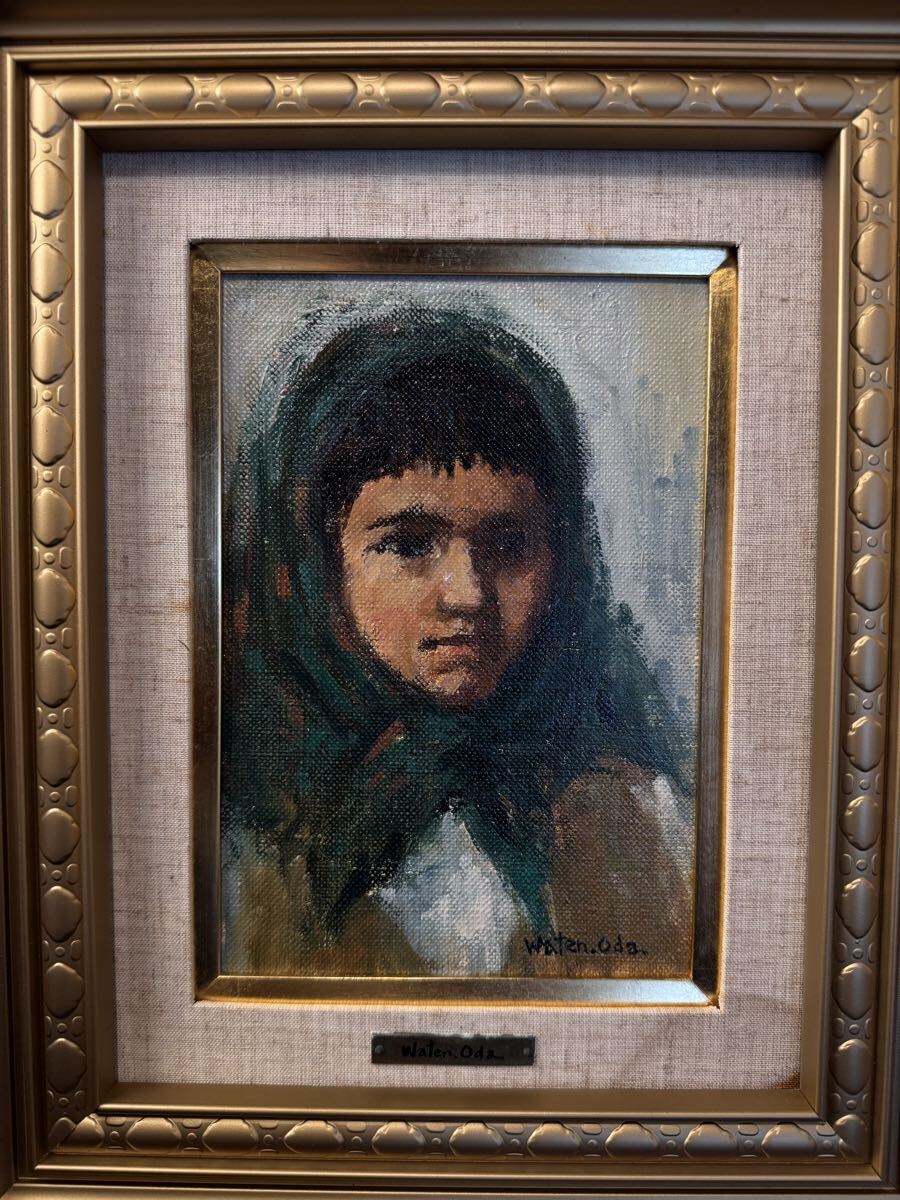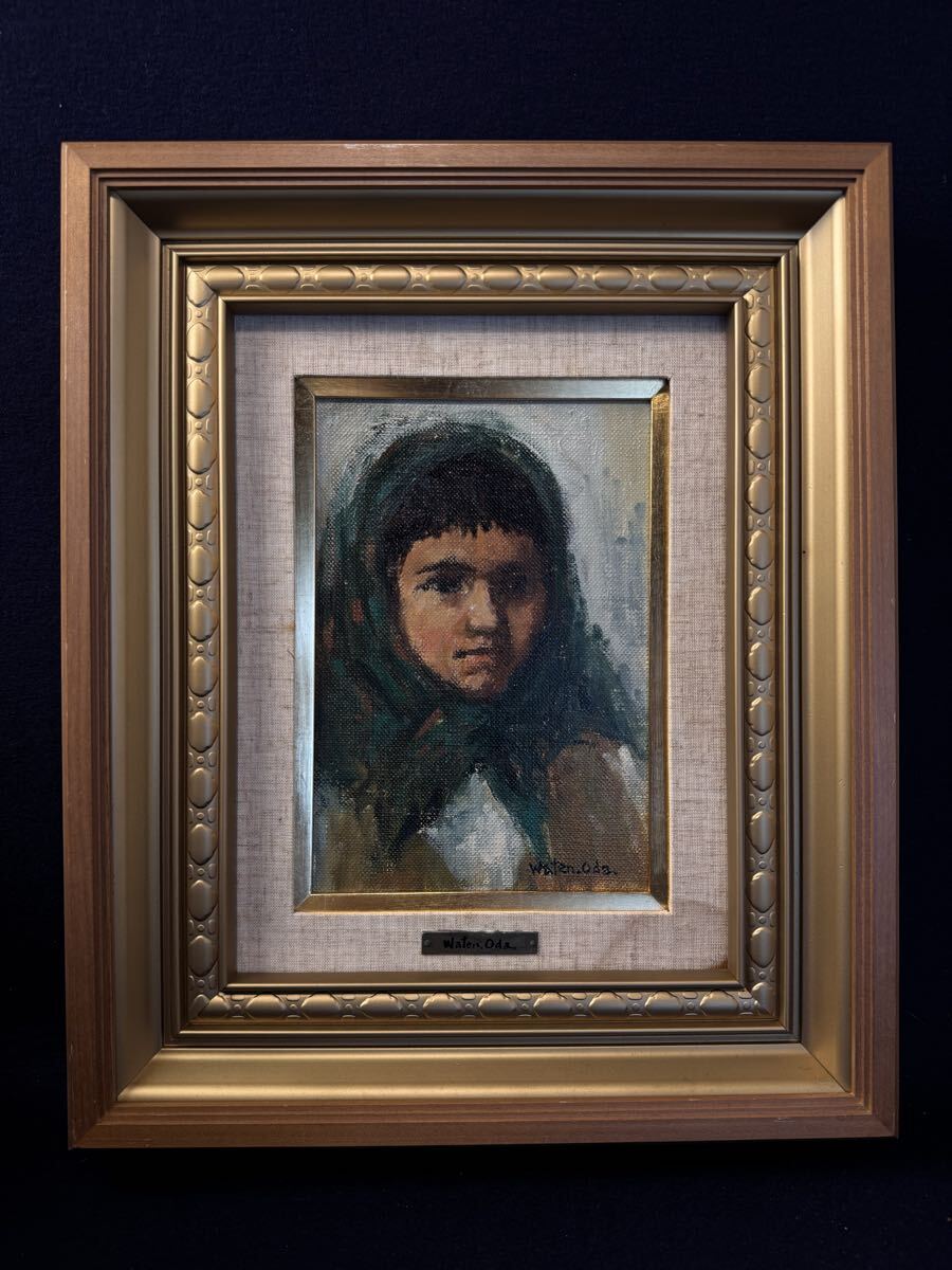 真作 小田和典 『 バスラの少女 』 油彩 SM号 ネームプレート付き シルクロード 福岡県 八女市 油絵 額装