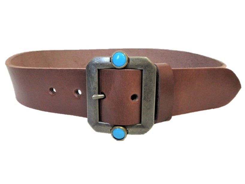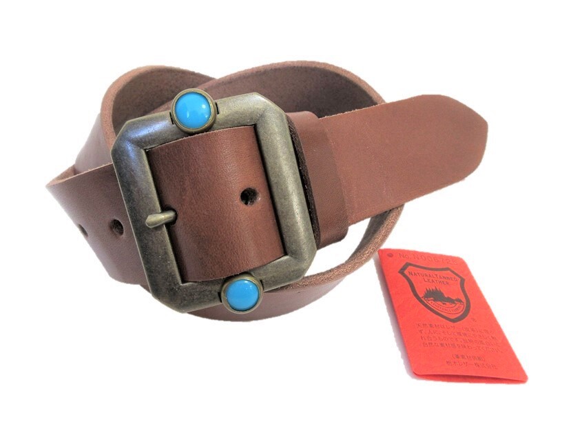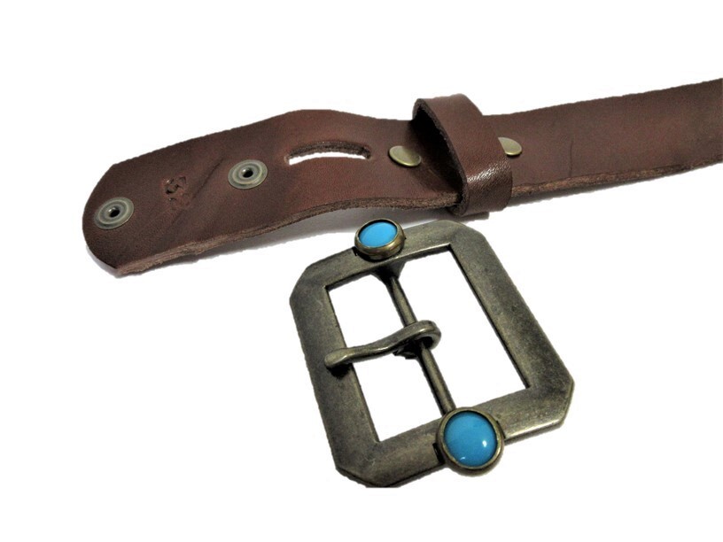 バックルは当社オリジナルのスタッズ付き八角バックルです。亜鉛素材のアンティークゴールドメッキです。