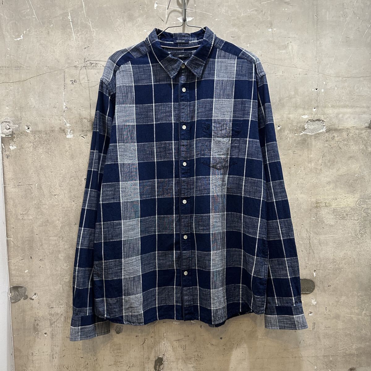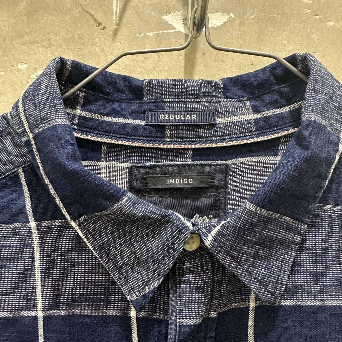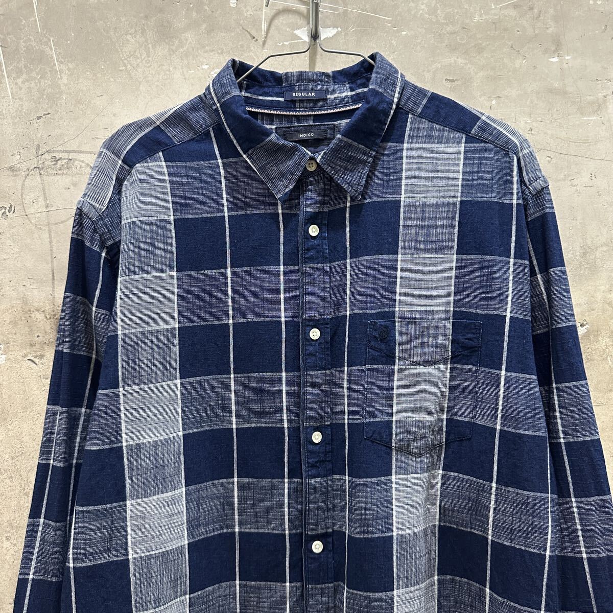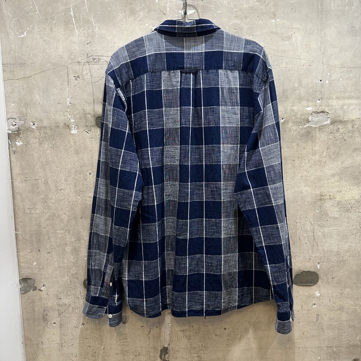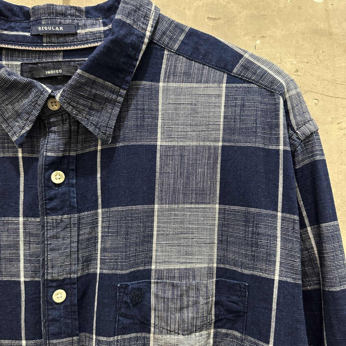 US古着 ラングラー チェックシャツ 長袖 インディゴ 赤耳 WRANGLER