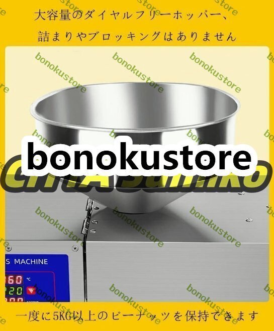 商品説明 商品説明 この商品について3000W 業務用搾油機 大容量のダイヤルフリーホッパー、ジャミングやブロッキングなし 一度に10匹以上のピーナッツを積み込み、1時間あたり18~20KGの原材料をプレスすることができます工業用純鋼ブラシレスモーター 産業用モーター設計を