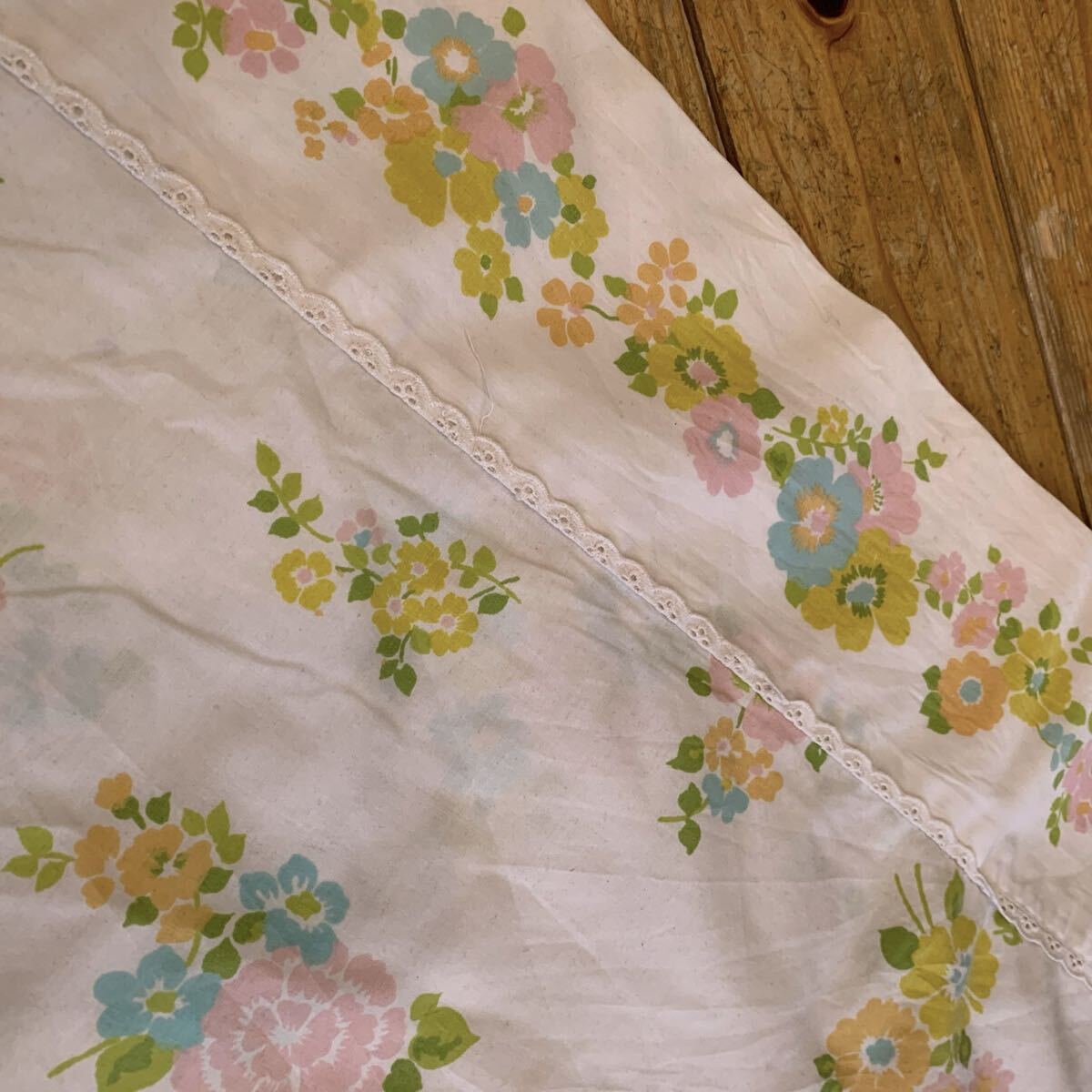 アメリカで購入したセカンドハンド(古着)の、花柄ベッドシーツです。