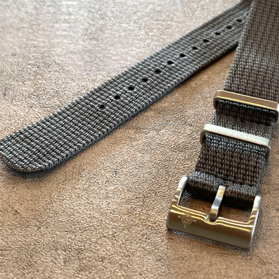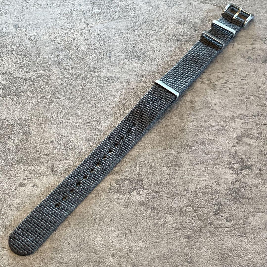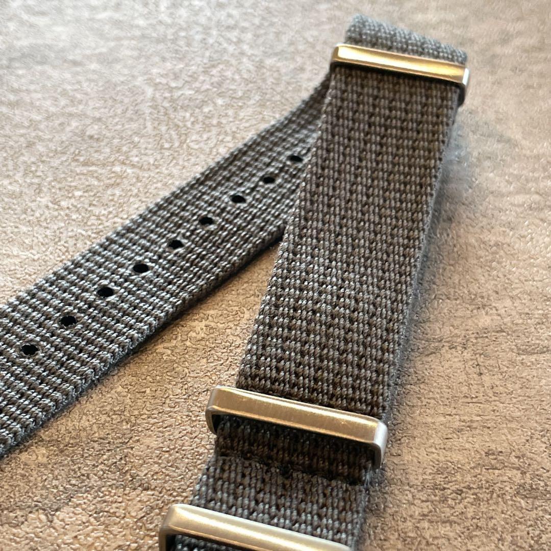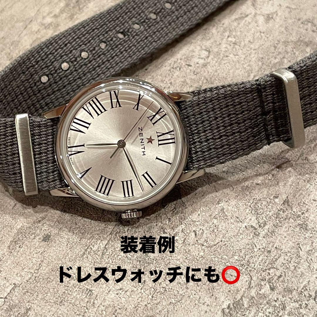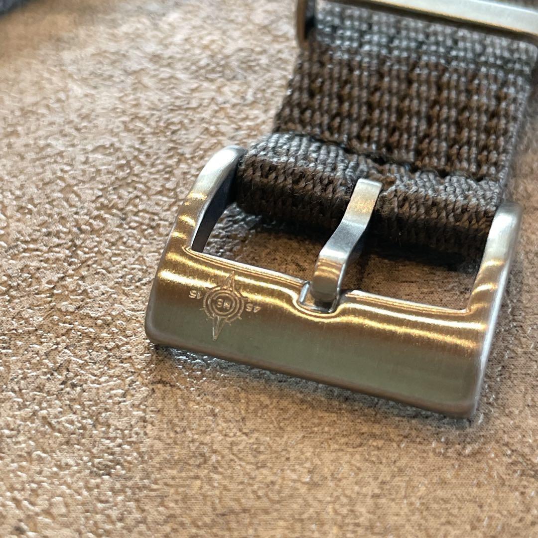 工業製品とも言うべきナイロン製のNATOベルトが主流な中、珍しいプレミアムコットンで作られております。
