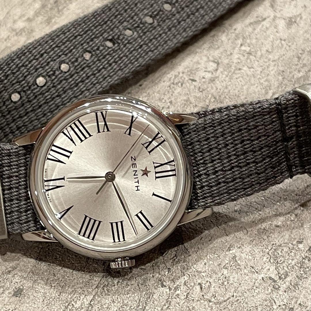 定番カラーのグレーも味のある素材を使用する事で、時計がいつもと違う表情を見せてれます。