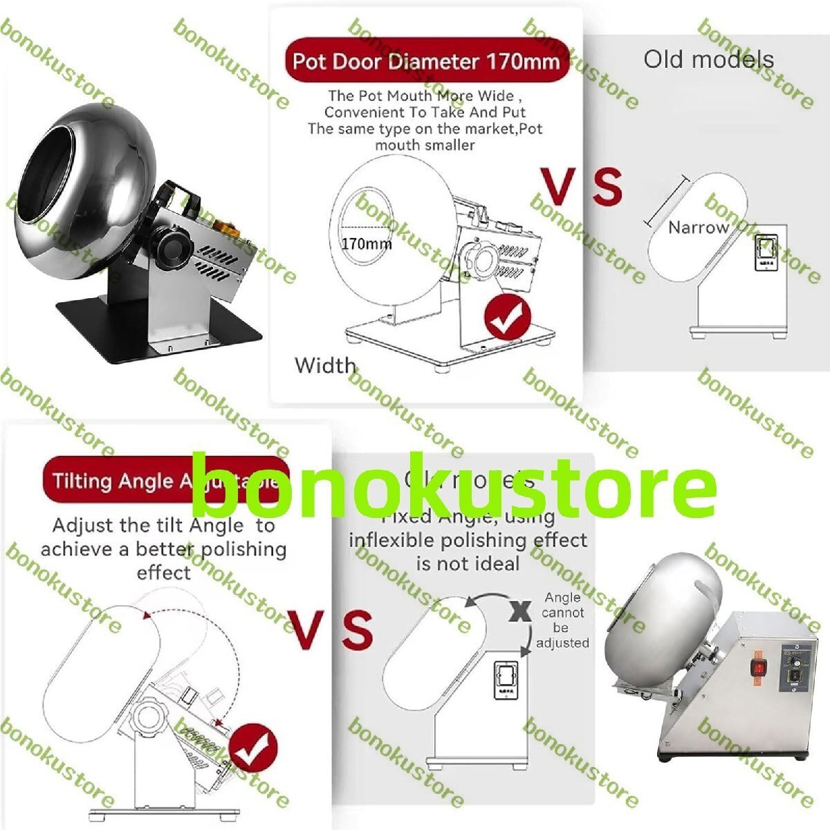 200W自動キャンディコーティング機、58R /分のデスクトップチョコレートコーティング機、高さと角度を調整可能、チョコレート、キャンディ、ピーナッツ、ナッツ用のステンレススチール研磨機