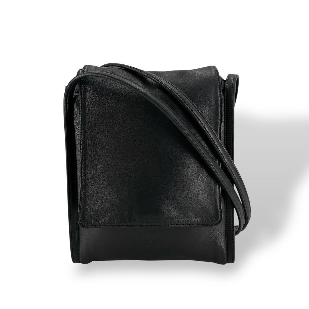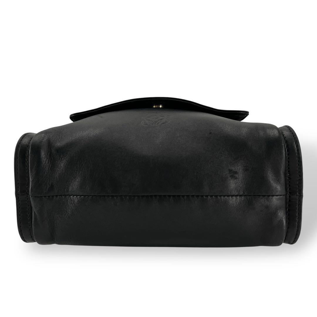 LOEWE トートバッグ ロゴプレート ゴールド金具 型押しロゴ フラップ ロゴ型押し ヴィンテージ ビンテージ ブラック レザー
