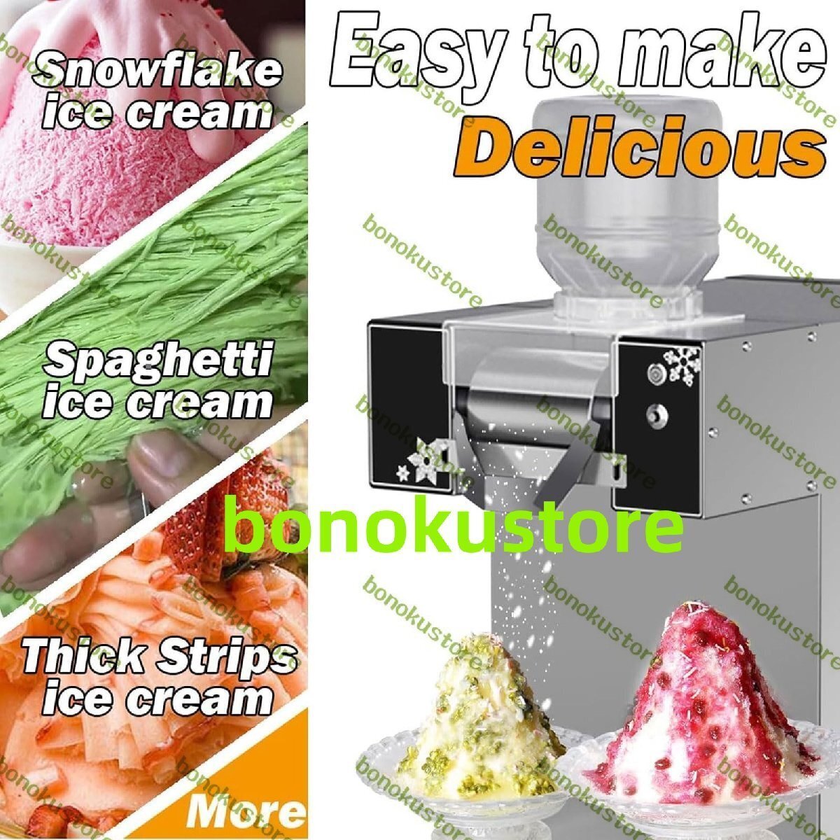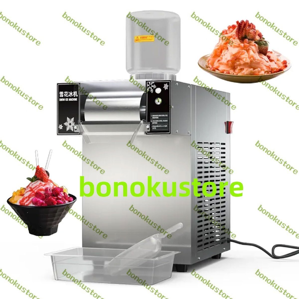 200kg/24時間電動スノーコーンシェーバー 1200W業務用スノーフレーク製氷機(材料バレル2個と受箱付き) 9段階速度調節可能