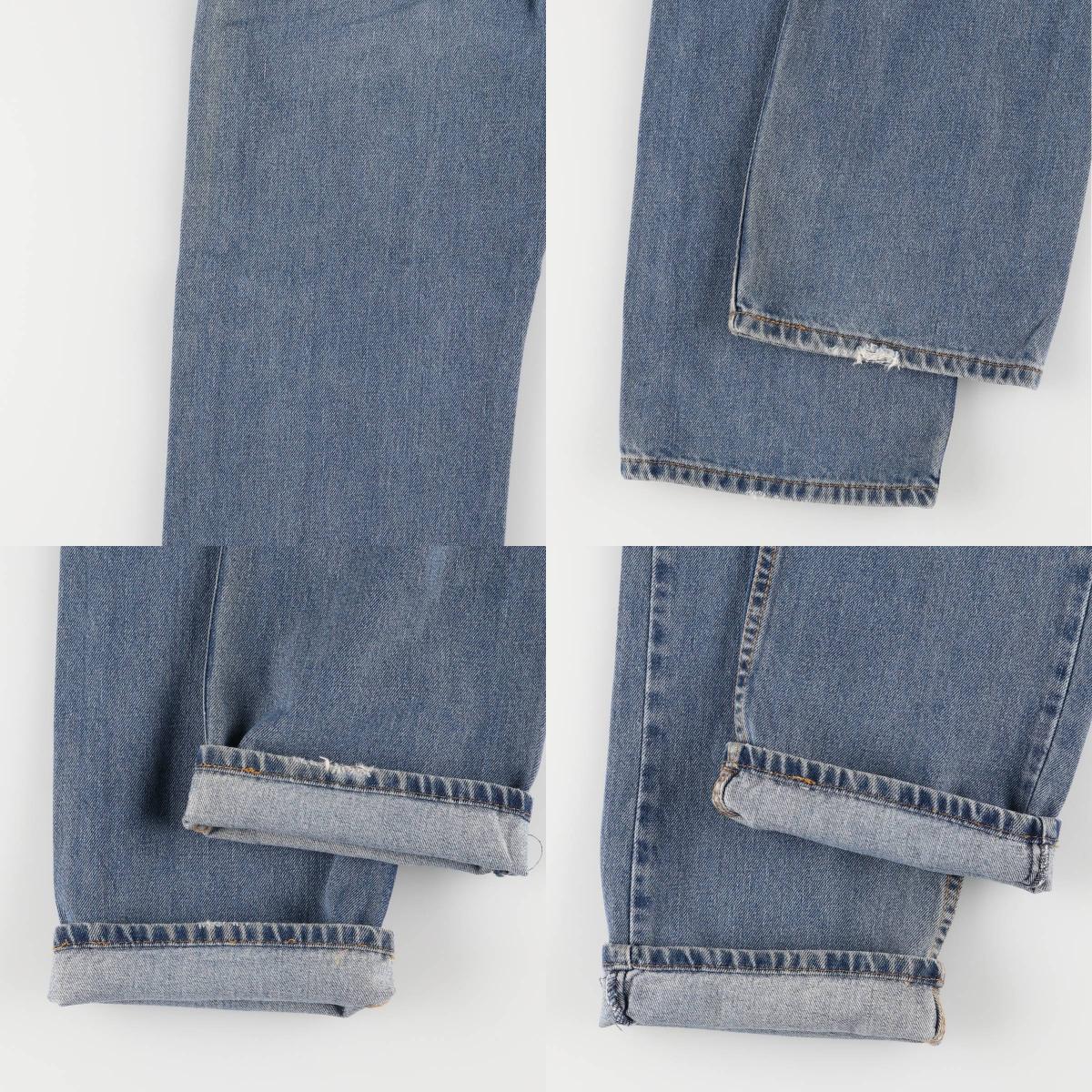 着用感: メンズw33 表記サイズ: W32 L30 ウエスト: 85cm 股上: 27.5cm 股下: 76.5cm もも周り: 60cm 裾周り: 46cm ![]() | ![]() ランク:C USEDデニムですので使用感、擦れ、色落ちなどございますが、まだまだご愛用していただけます。 古着という事をご理解の上ご注文よろしくお願いします。 【状態追記】 ●全体色褪せ ●前、左腿・左膝・両ポケット(内・口)に汚れ 左脛に糸引き ●後、左ヒップ・左腿・右裾に汚れ 両裾(内も)に擦れ ●内側、両裾に汚れ |