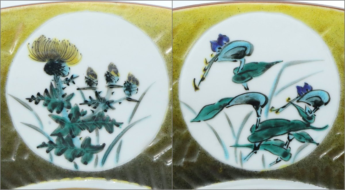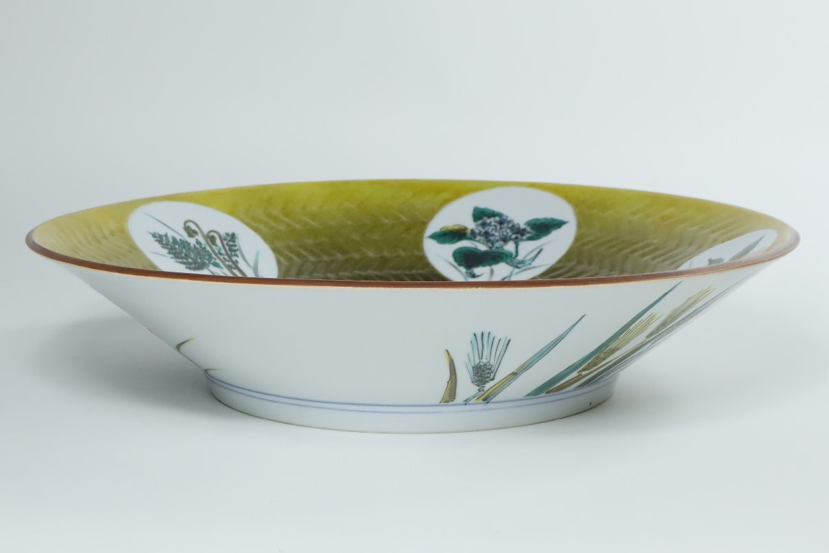 | ・九谷焼 山近剛 草花丸紋飾皿 共箱 /色絵皿 大皿 九谷皿 |