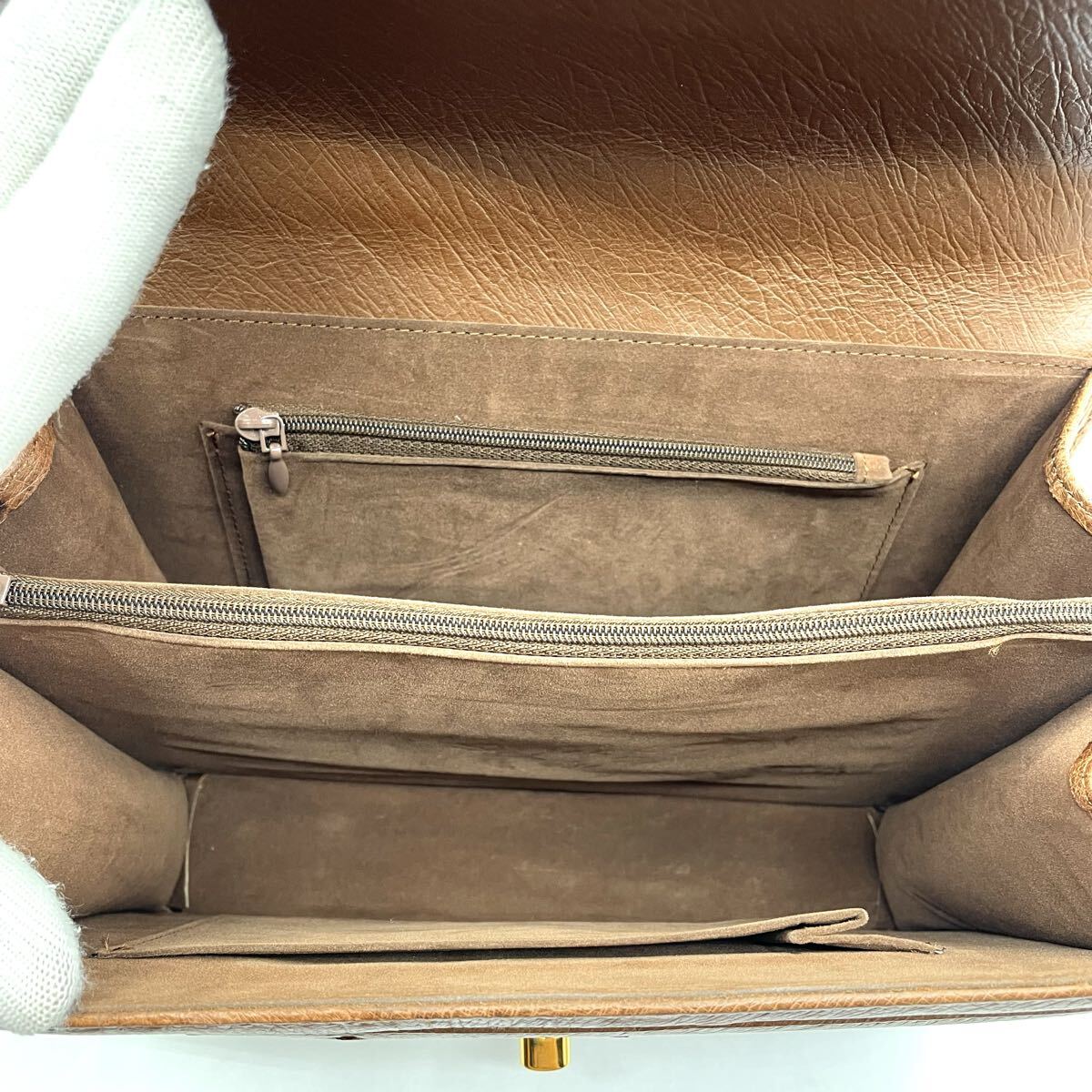 【GENUINE 美品】 オーストリッチ ハンドバッグ 2WAY ショルダー エキゾチックレザー ダチョウ革 駝鳥 ブラウン 茶 レディース 2479