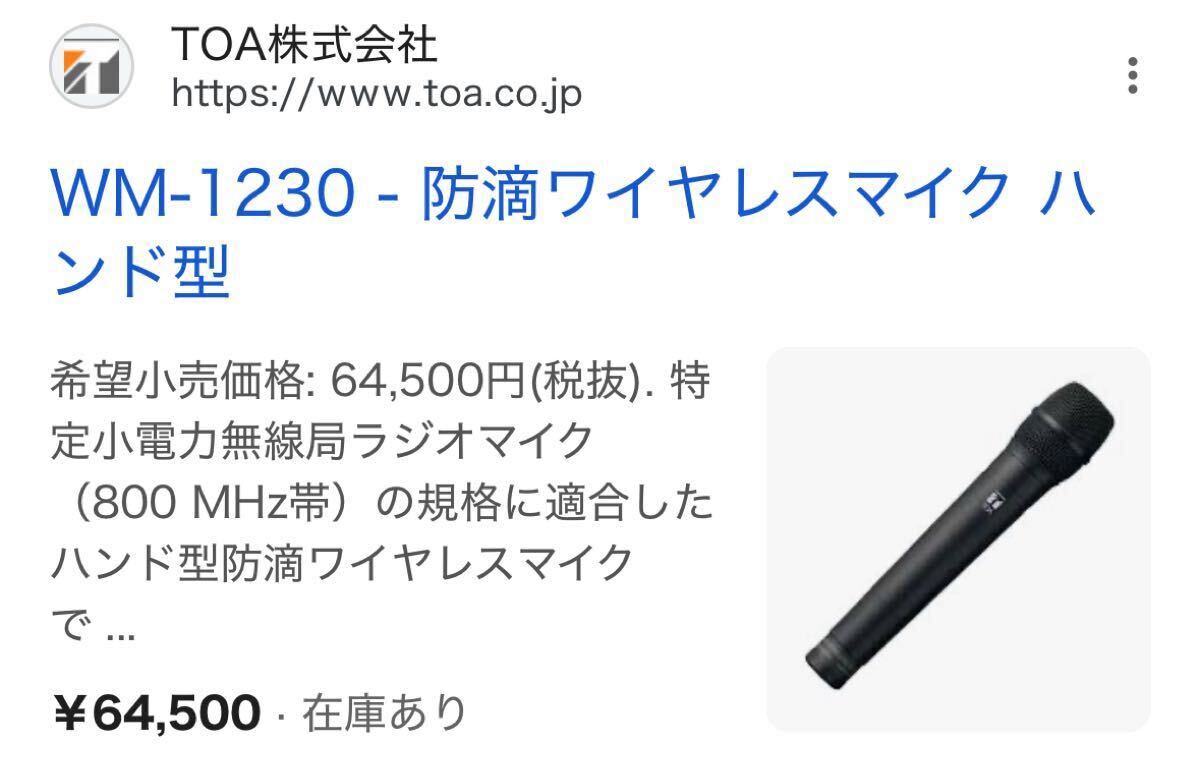 TOA/ワイヤレスマイク 防滴型ハンド型 WM-1230