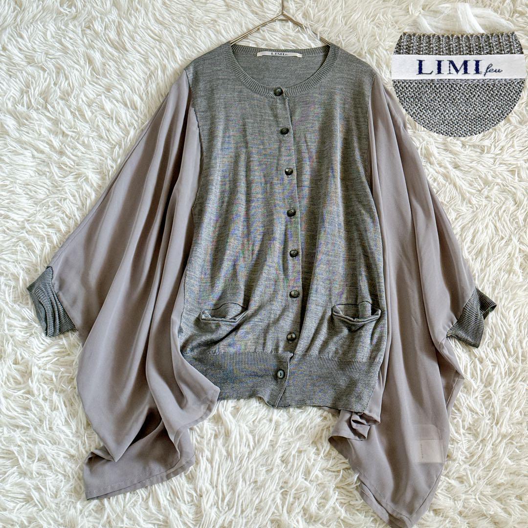 LIMIfeu リミフゥ カーディガン トップス ポンチョ ドルマンスリーブ モード YohjiYamamoto ヨウジヤマモト 変形デザイン グレー レディース 変形羽織り デザイナーズブランド