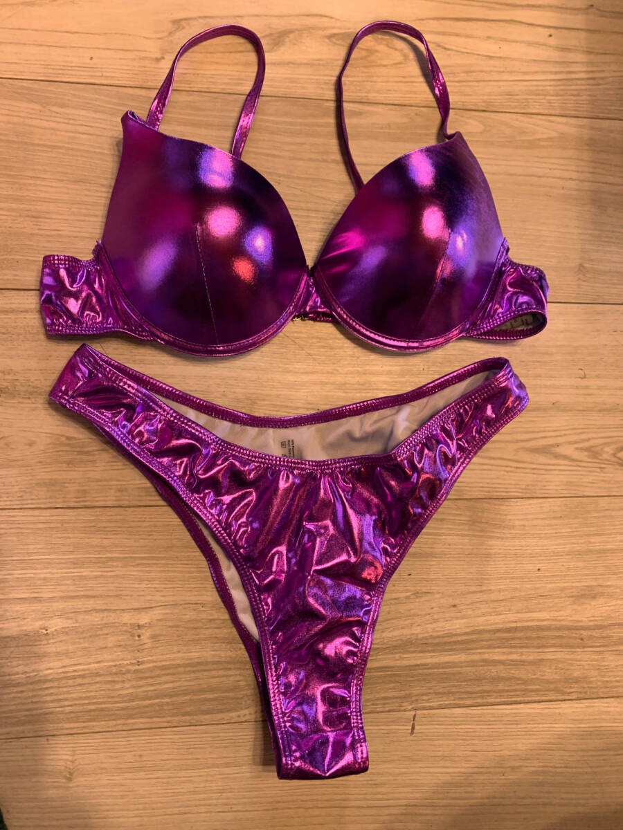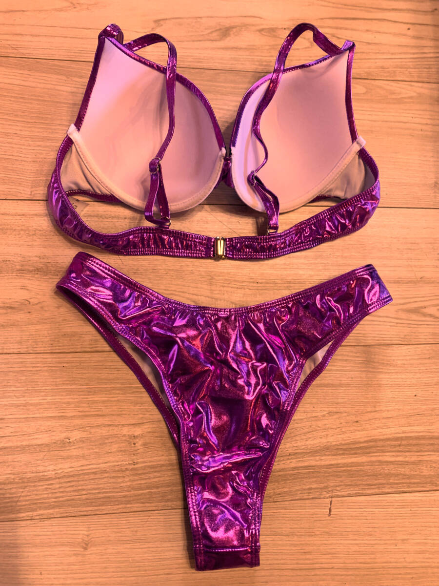 新品 ワイヤー ビキニ 水着 メタリックパープル D75Lくらい