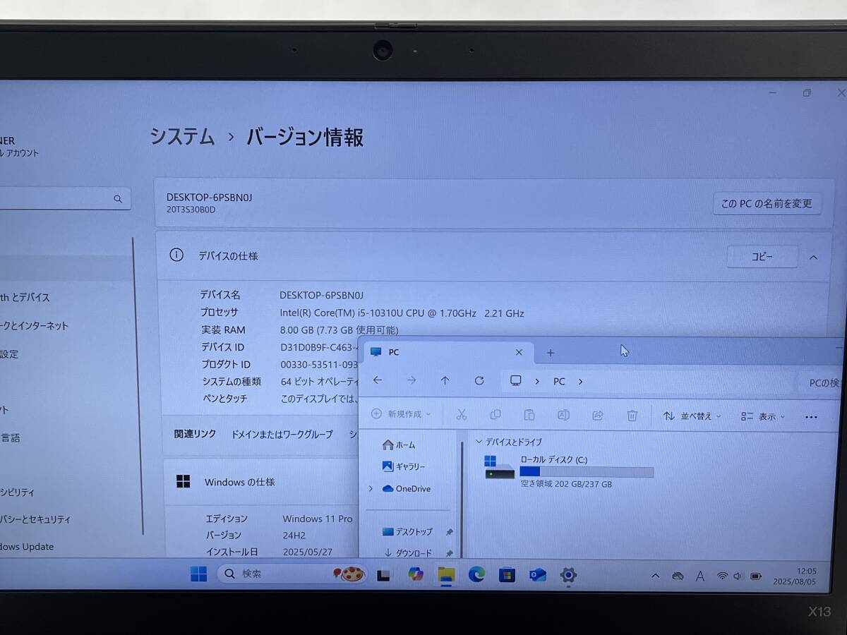 | グラフィックス | Intel UHD Graphics(CPU内蔵) |