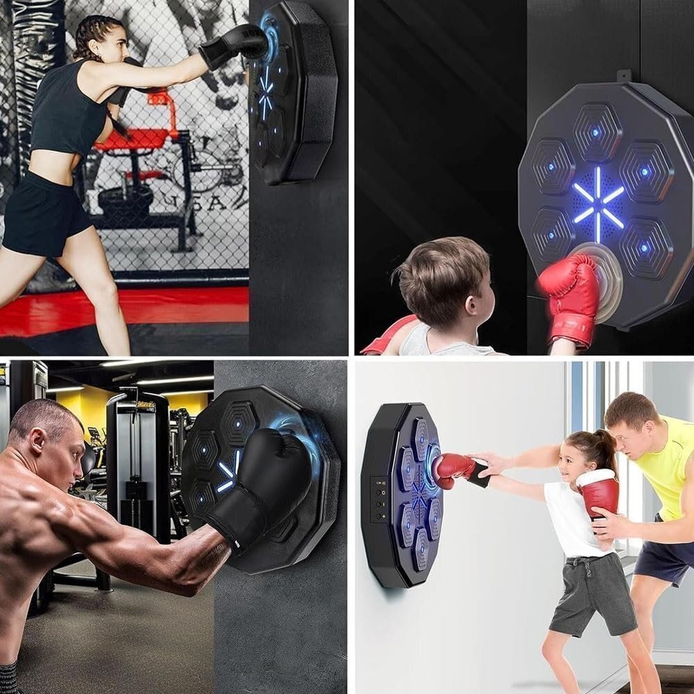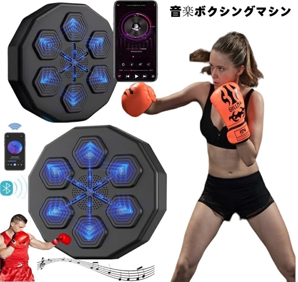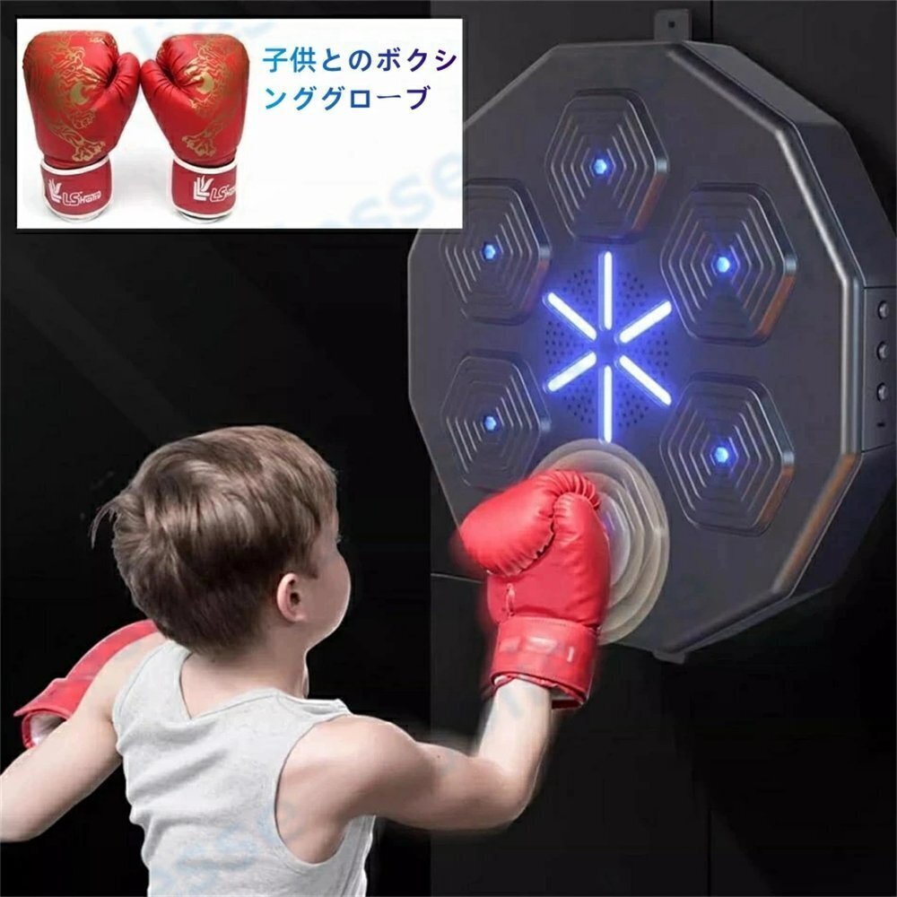 音楽ボクシングマシン 3点セット レッドグローブ付き スマート ディスプレイ付き 子供 大人 壁パンチングバッグ スマート