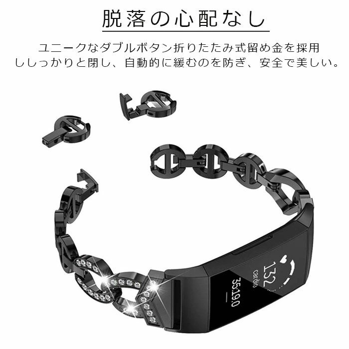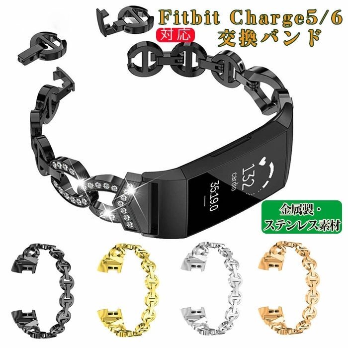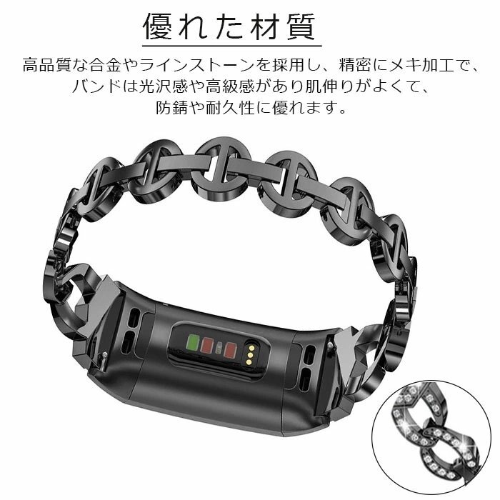 fitbit charge 5バンド fitbit charge 6 交換バンド メタル ラインストーン フィットビット かわいい おしゃれ 交換用バンド☆4色選択/1点