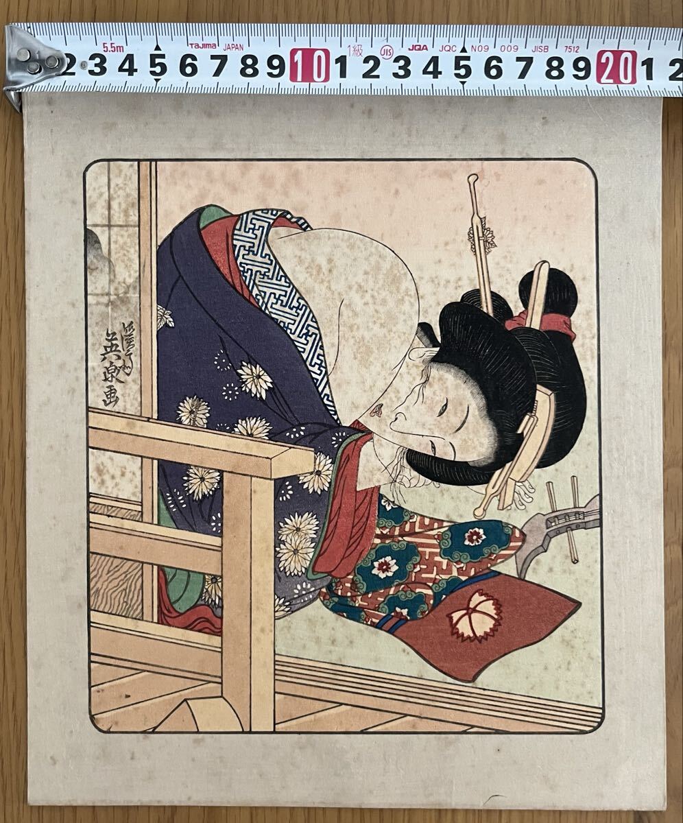 【真作】明治期 浮世絵木版画 溪斎英泉「美人画」中判 錦絵 保存良い