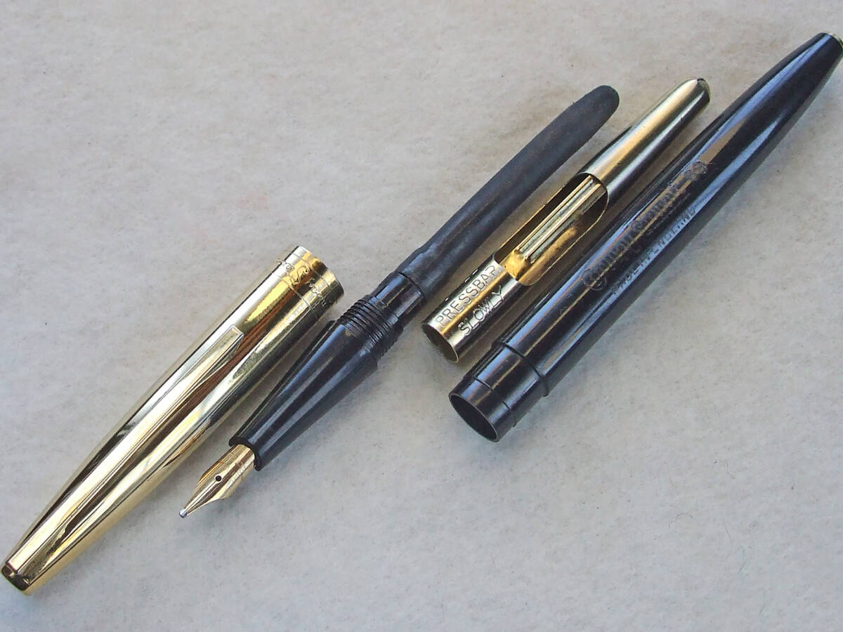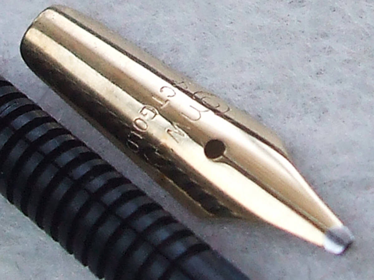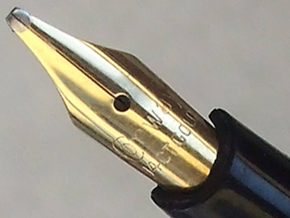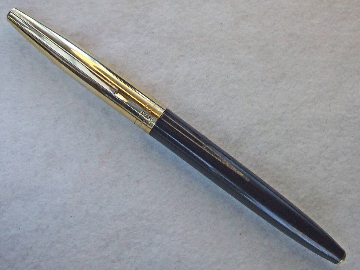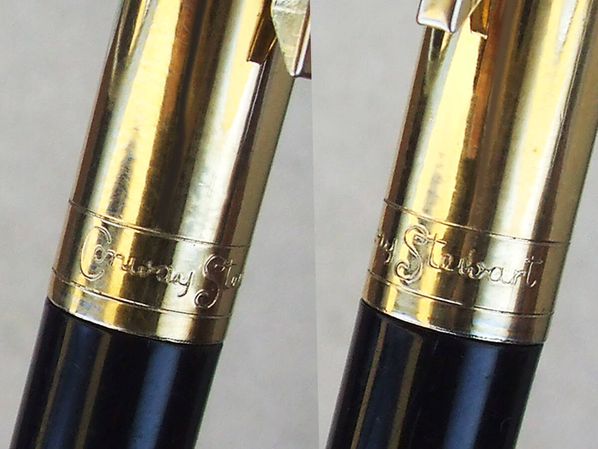 オーバーホール済み。およそ50数年前の英国製コンウェイ・スティワート万年筆 No.69モデルです。ロールドゴールドキャップ/ブラックバレルボディは全長約134mm、スリップキャップをボトムにはめた状態で148mm とロングサイズ。キャップにConway Stewart、バレルに Conway Stewart 69 MADE IN ENGLAND 刻印がございます。Conway 14CT GOLD 刻印のあるオリジナル14金ニブは中字ミディアムサイズ。ポイントのイリジウムは残っており書き味は非常にスムースな印象。インク吸引はエアロメトリック式(中押し式)ニブセクションを分解洗浄、ラバーサックを新しく交換済み。インクをしっかり吸引。インクフローも良好です。細かいスレキズ等使用感が強く見られますが、実用筆記の問題無く充分コレクティブルなコンディションに保たれております。以上ご了承いただける方の入札をお待ちしています。入手困難な稀少ヴィンテージ・コンウェイ万年筆。日々の実用に、コンウェイコレクターの方いかがでしょうか。発送はレターパックライト430円を予定しています。