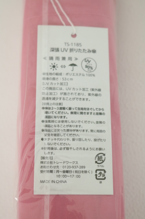 50本セット! フリマ販売など仕入れに! 深張UV折りたたみ傘 ピンク ※他カラー在庫はございません。 ネイルガード付 W45×H120mm パネル:W180×H120mm 親骨/約530mm 折りたたみ時/約250mm 材質:ポリエステル/スチール/他 荷姿:OPP袋 紫外線、急な雨、対策に、コンパクトな折り畳み傘、晴雨兼用です。 夏場でなくても、くもりの日でも、意外と紫外線は届いています! 紫外線対策 日焼け対策 梅雨 ゲリラ豪雨 夕立 の備えに! 持ち手ハンドルには保護フィルム(画像8)がついていますが、外すと表面部分に多少ベタが出ています。(画像9) 表面の加水分解した部分をエタノール消毒液で除去すれば、簡単につるつるした状態に戻すことができます。(画像10) |