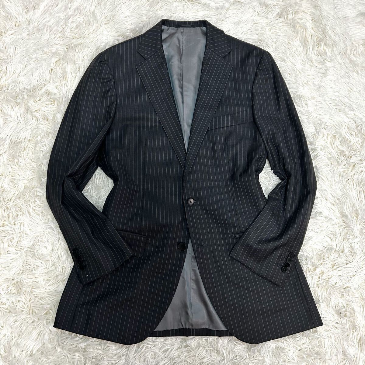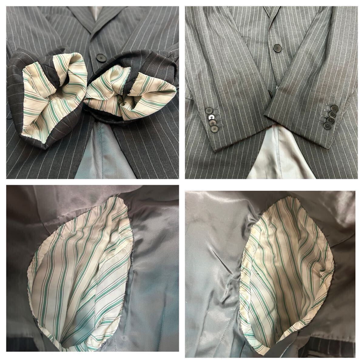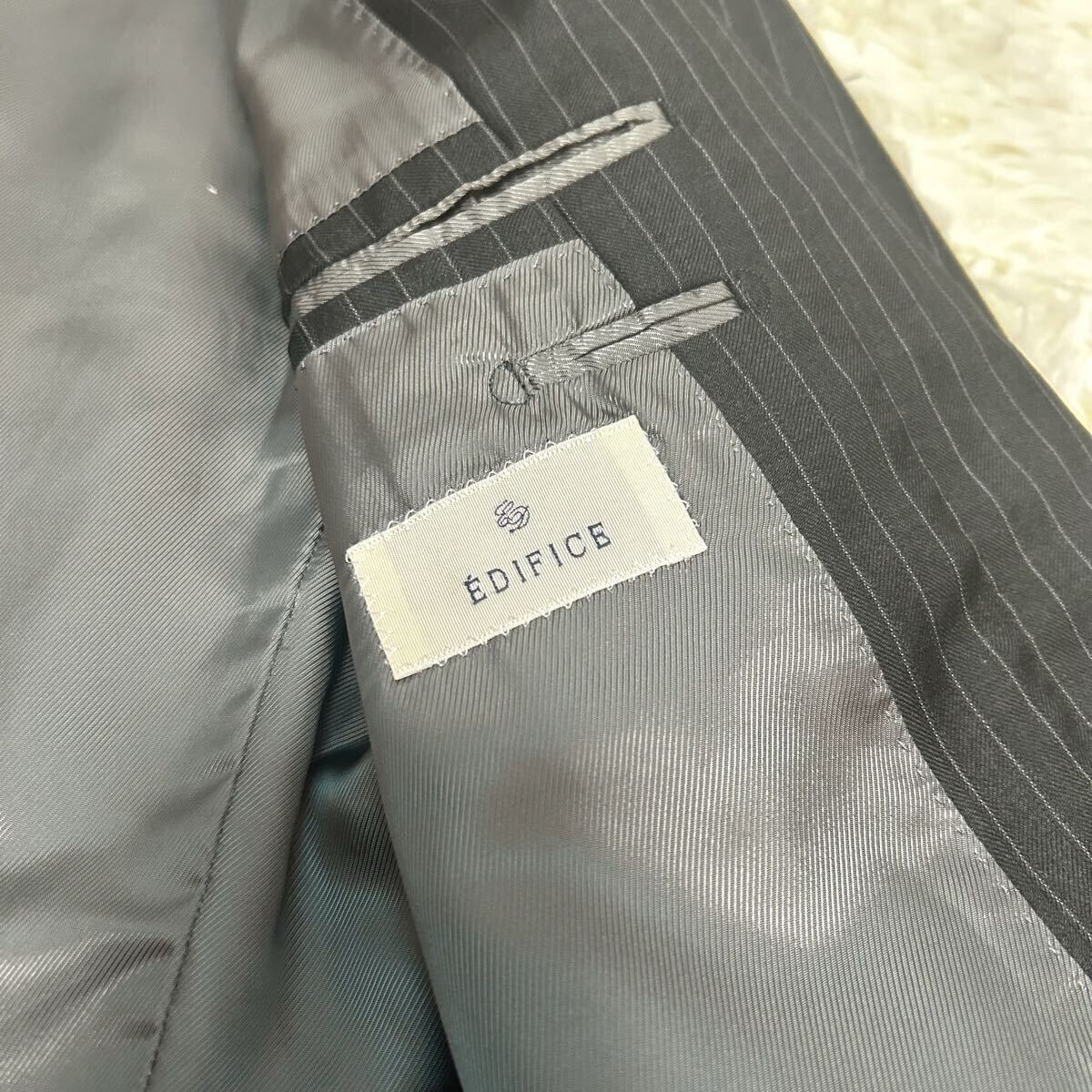 1円 EDIFICE エディフィス 高級生地 ロロピアーナ セットアップ スーツ グレー ビジネス ストライプ 2B ツーボタン 総裏地 50 4シーズン XL