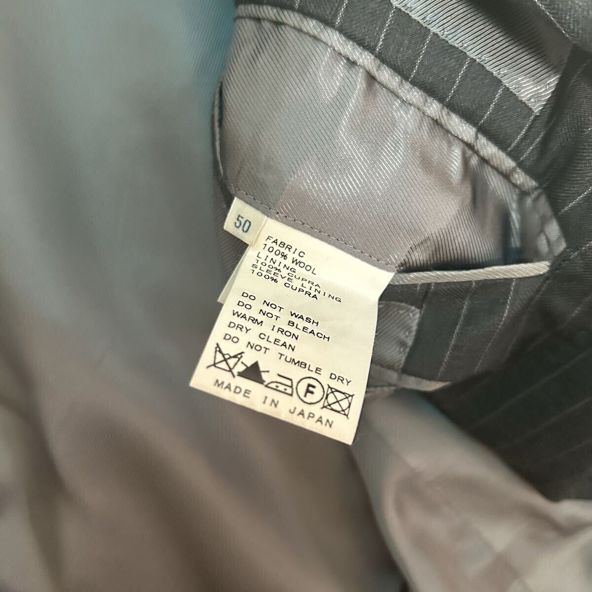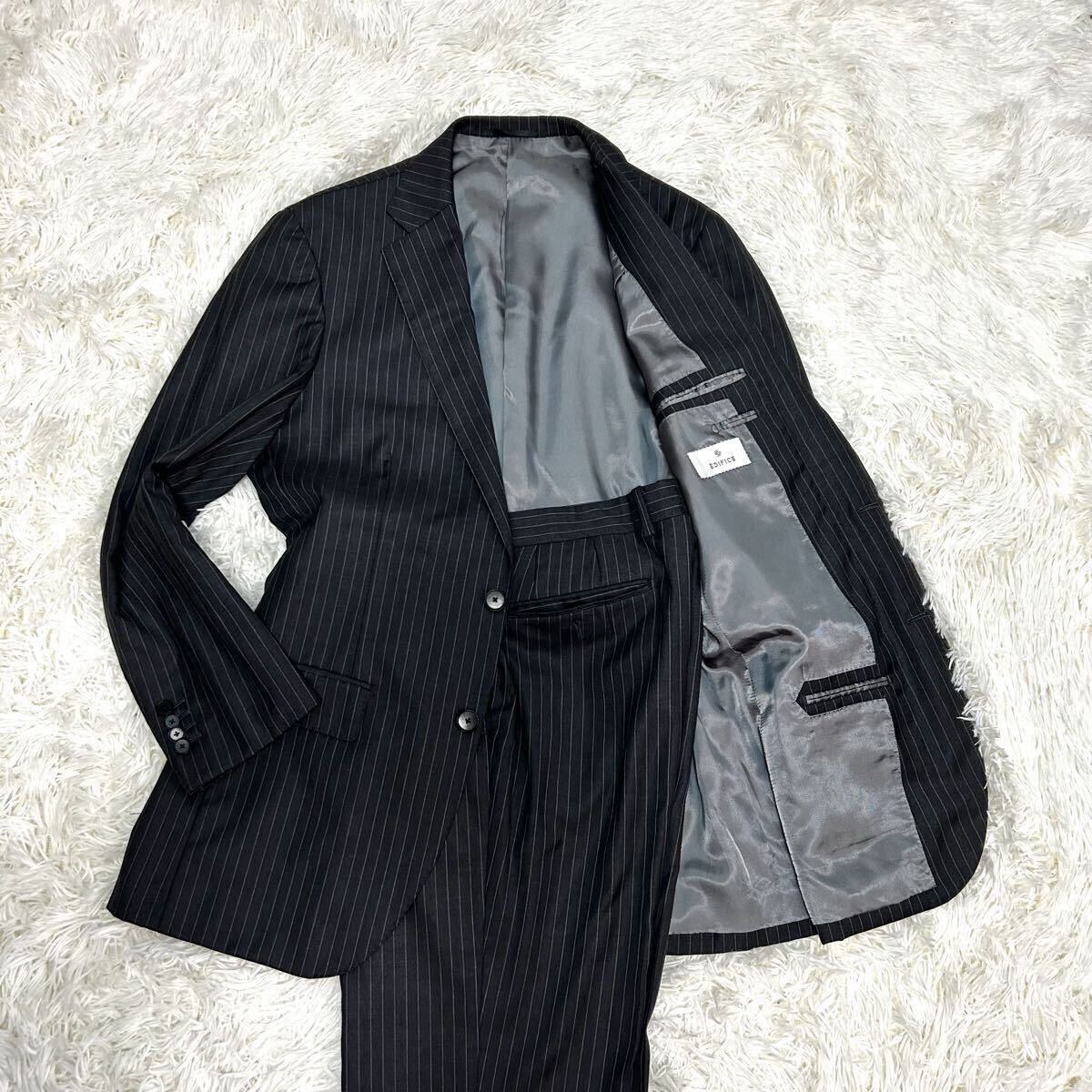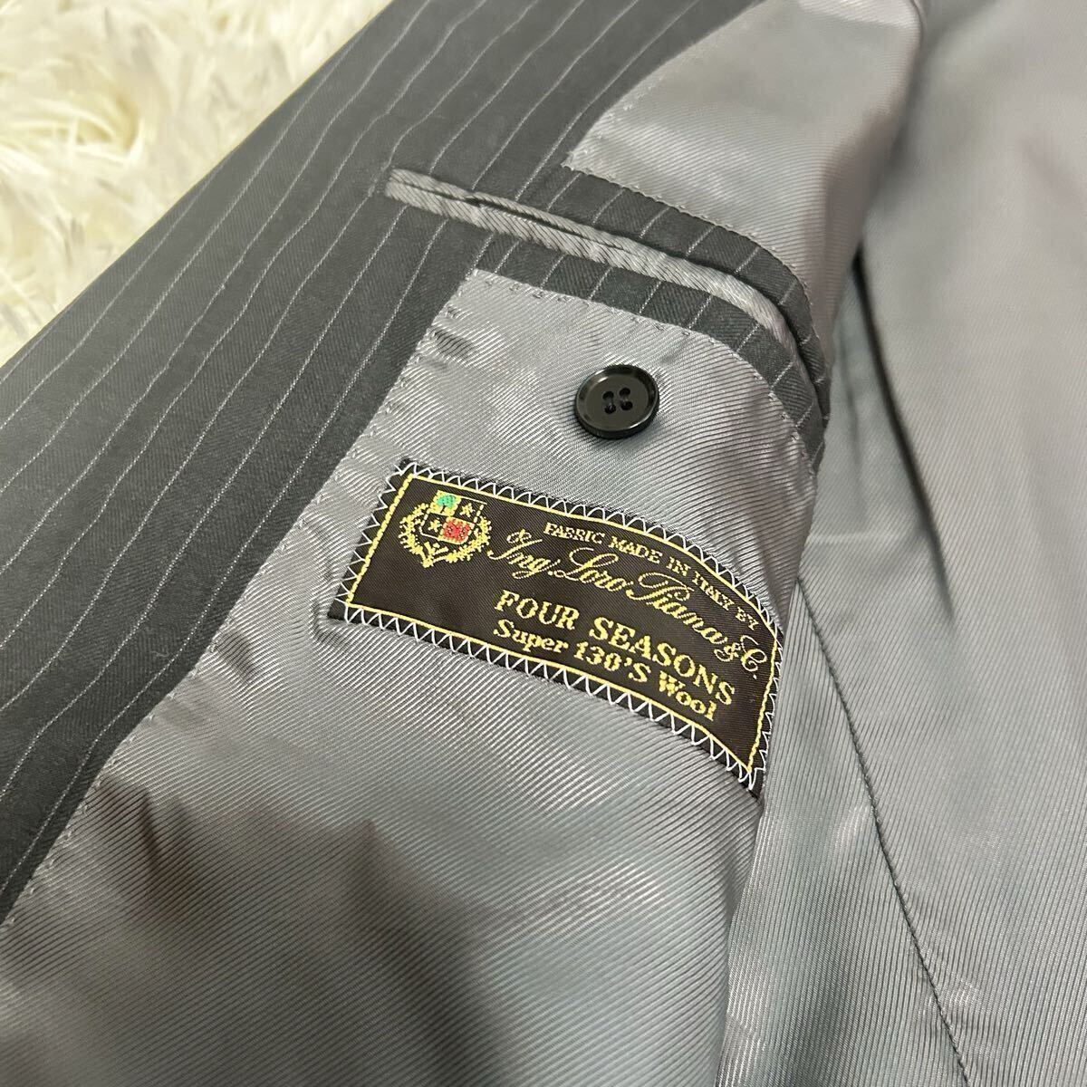 1円 EDIFICE エディフィス 高級生地 ロロピアーナ セットアップ スーツ グレー ビジネス ストライプ 2B ツーボタン 総裏地 50 4シーズン XL