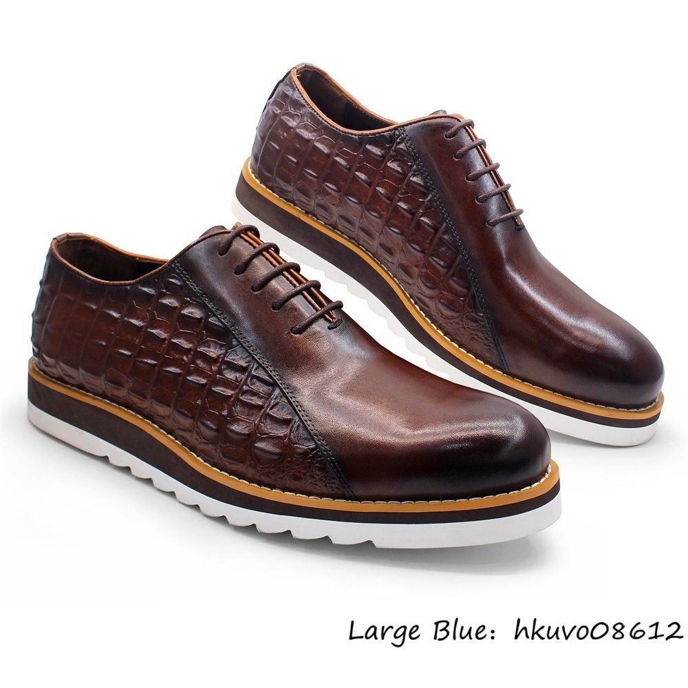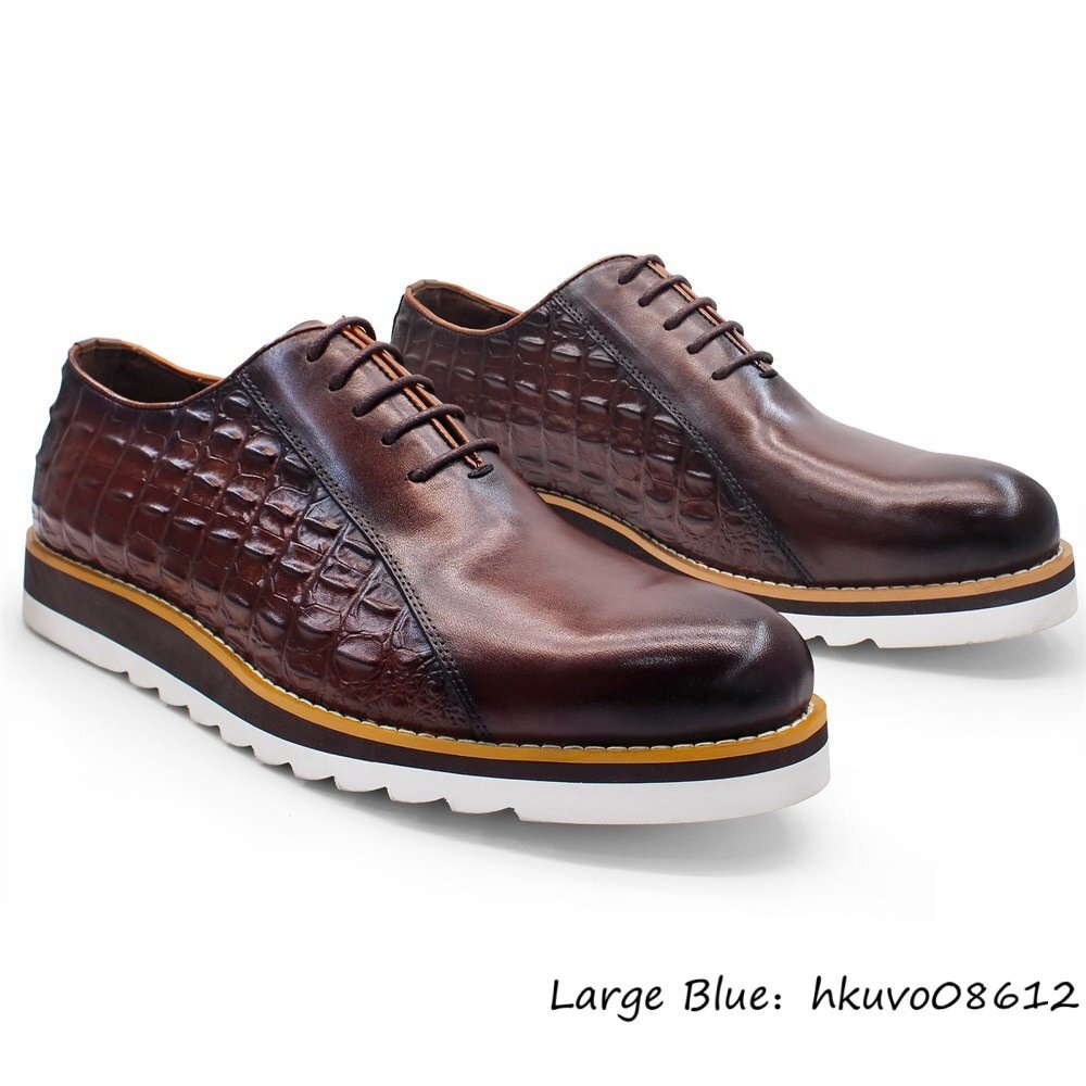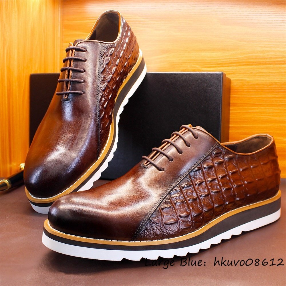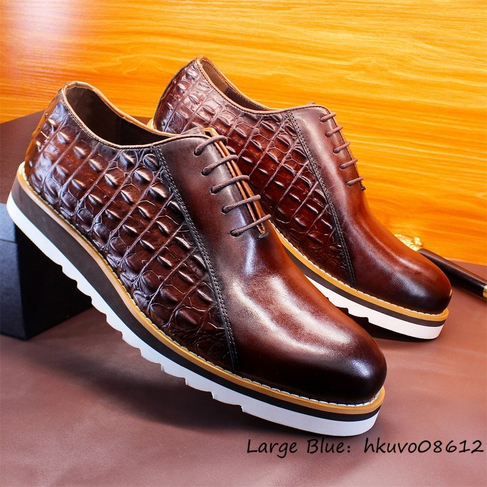 定価10万■ローファー メンズ 本革 ビジネスシューズ 本革 レザーシューズ スリッポン 厚底 鰐柄 切替 高級牛革 新品 カジュアル 27.5cm