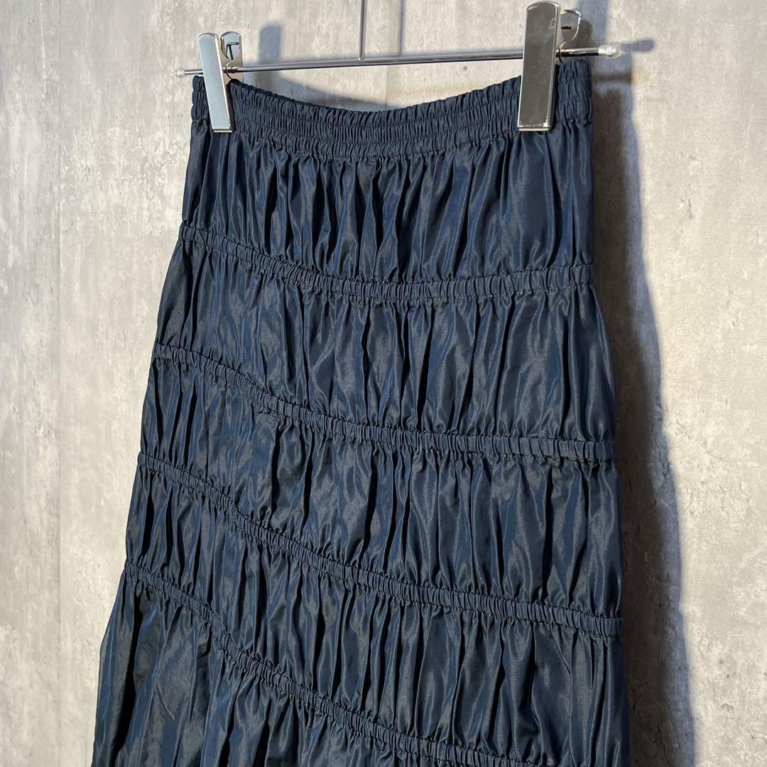 名品☆ ロエフ LOEFF グロッシータフタ ギャザーロングスカート 近年モデル
